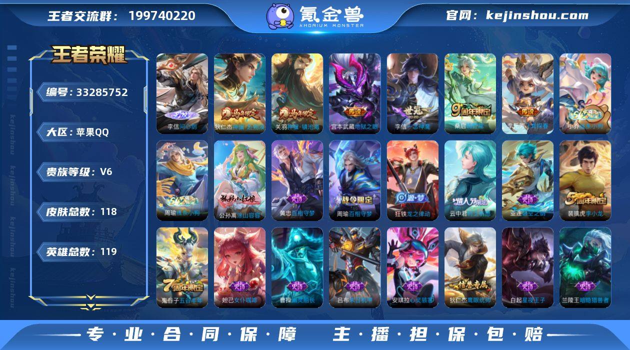 苹果Q-V6-永恒钻石IV段位-119英雄-118皮肤-1无双-6传说-26史诗 QW264904 【英雄全皮】:敖隐全皮 【无双皮肤】:李信问心剑 【传说皮肤】:关羽神骥镇沧海,狄仁杰神骥赴朔漠,桑启鸣野蒿,李元芳飞鸢探春,李信一念神魔,宫本武藏地狱之眼 【限定皮肤】:蒙犽顽岩魄,姜子牙天穹之誓,狄仁杰阴阳师,赵云皇家上将,狄仁杰魔术师,狄仁杰万华元夜,项羽海滩派对,兰陵王金庭之子,李元芳云中旅人,钟馗驱傩正仪,鬼谷子五谷丰年,沈梦溪大漠名商,明世隐疑决卦,裴擒虎李小龙,裴擒虎擒涛扼浪,云中君时之祈愿,鲁班大师探海日志,桑启海盐诗旅,艾琳女武神,鬼谷子天穹祈灯,项羽苍威无极,周瑜熔金海岸 【赛季限定】:明世隐疑决卦,狄仁杰万华元夜,钟馗驱傩正仪,兰陵王金庭之子,沈梦溪大漠名商,李元芳云中旅人,桑启海盐诗旅,裴擒虎擒涛扼浪,鲁班大师探海日志,鬼谷子天穹祈灯,姜子牙天穹之誓,东皇太一噬灭天穹,太乙真人谧流熔炉,甄姬逆浪荇歌 【战令限定】:项羽苍威无极,亚连破空之剑,孙悟空神迹守卫,周瑜百相守梦,孙策百相守梦,周瑜线条小狗,小乔线条小狗 【史诗皮肤】:周瑜线条小狗,小乔线条小狗,公孙离涂山容容,黄忠百相守梦,周瑜百相守梦,狂铁...