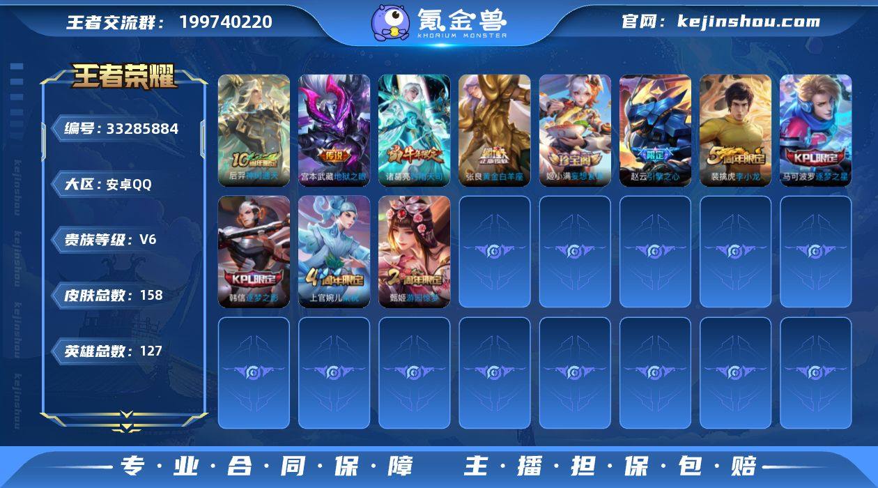 安卓q 可二次 5传说 158皮肤127英雄 神树通天 霜北刀 时雨天司 黄金白羊座 地狱之眼 万灵启世 时雨天司 逐梦之影 逐梦之星 引擎之心 猎兽之王 蓝屏警告 朔望之晖 暗影游猎 死神来了 梁祝 狂想玩偶喵 苍穹之光 黄忠百相守梦 天秀启明 原初探秘者 李小龙 猫狗日记男 金属风暴 黄金分割率 舞动绿茵 妄想食味 千年之狐 圣诞恋歌 幽灵船长 节奏热浪 偶像歌手 街头霸王 暗渊魔法 鬼剑武藏 赤莲之焰 单词大作战 冰雪圆舞曲 花好人间 妖精王 凯尔特女王 狰 饕餮 穷奇 御狮 御霄 御旌 御銮 朔风刀 混沌棋 疑决卦 醍醐杖 万华元夜 克喵 演武夺筹 黑猫爱糖果 如懿 拳王 霸王丸 敏锐之力 丁香结 皇家上将 魅力维加斯 探海日志 水果甜心 无心 纤云弄巧 游园惊梦 繁星吟游 乱世虎臣 驯魔猎人 鹰眼统帅 魔术师 王者荣耀账号