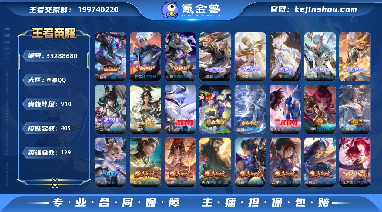 TD264910无二次苹果Q-V10-至尊星耀III段位-129英雄-405皮肤-3典藏皮肤-6无双-5珍品传说-54传说-109史诗 【英雄全皮】:司马懿全皮,孙权全皮,鬼谷子全皮,敖隐全皮,澜全皮,盘古全皮,空空儿全皮,影全皮,海诺全皮 【荣耀典藏】:铠银白咏叹调,韩信弑枪猎影,吕布千魇归渊 【无双皮肤】:李信问心剑,孙悟空无相,铠神罪,诸葛亮天机白泽,曜器灵螭龙剑,公孙离离恨烟 【珍品传说】:伽罗沧流箭,嫦娥器灵落星盏,孙策时之奇旅,鲁班七号江户川柯南,马可波罗怪盗基德 【传说皮肤】:阿轲罗刹妄海,韩信踏浪归,云缨神骥越千峰,关羽神骥镇沧海,朵莉亚神骥鸣幻洲,狄仁杰神骥赴朔漠,貂蝉神骥聚万邦,马超神骥逐星野,李元芳星君娄金,花木兰异界灵契,王昭君长夜焕生,后羿神树通天,干将莫邪千山共赴,司马懿九山相柳,妲己愿照众生和,澜愿照九州拓,虞姬愿照岁时盈,嬴政玄雷天君,桑启鸣野蒿,典韦战鼓燎原,澜逐花归海,艾琳觅芳踪,露娜霜月吟,大乔时之奇旅,马可波罗妄想实况,东皇太一灼幽烈阳,澜电玩雷克斯,夏洛特浮生妄,虞姬无限倾心,项羽无限倾心,伽罗炽翼辉光,孙悟空齐天大圣,小乔山海琳琅生,吕布怒海麟威,大乔挚爱花嫁,孙策挚爱之约,瑶时之祈...