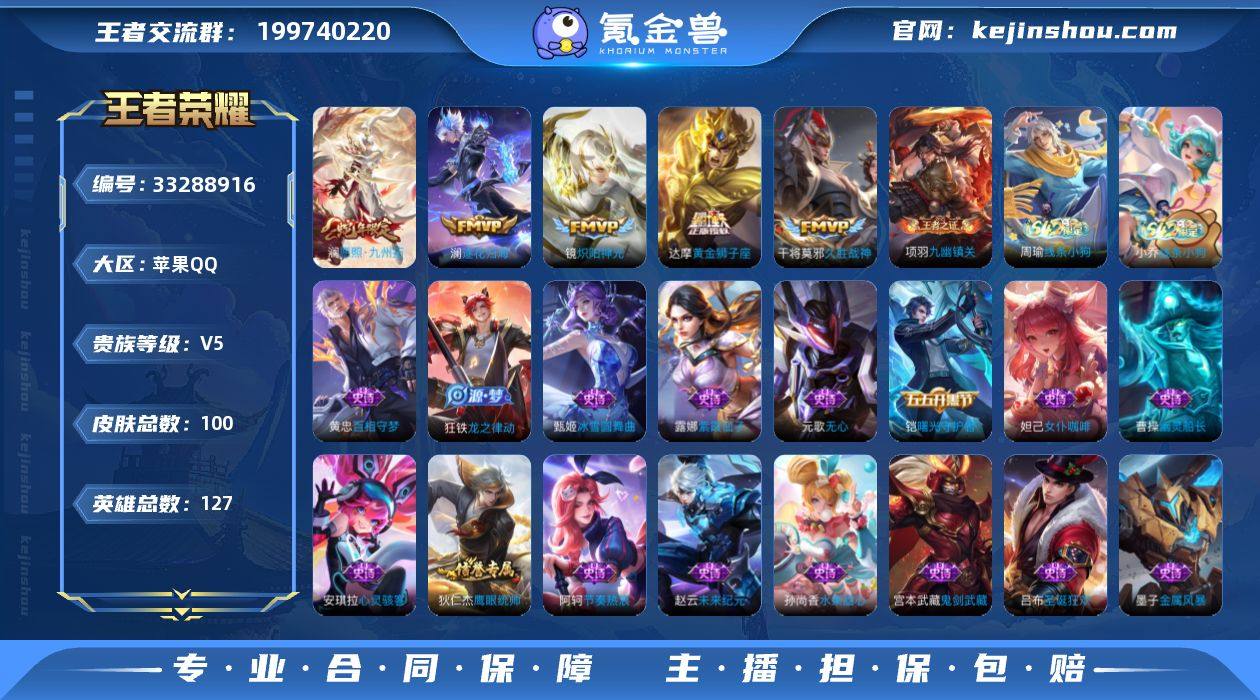 贵族5/皮肤100/传说6/史诗25/英雄127/狄仁杰神骥赴朔漠/愿照·九州拓/澜逐花归海/炽阳神光/久胜战神/黄金狮子座/天穹之誓(s36)/阴阳师/皇家上将/无心/海滩派对/原初追遂者/女武神/鬼谷子天穹祈灯(S34)/龙武盛年/剑破天穹(s35)/程咬金群星魔术团/熔金海岸/噬灭天穹(s37)/谧流熔炉/虚灵犬护/逆浪荇歌/荣光之誓/九幽镇关/茶境仙/访茗客/线条小狗-周瑜/线条小狗-小乔/百相守梦-黄忠/龙之律动/鹰眼统帅/节奏热浪/舞动绿茵/曙光守护者/心灵骇客/乱世虎臣/幽灵船长/圣诞狂欢/金属风暴/女仆咖啡/摇滚巨星/暗夜贵公子/水果甜心/鬼剑武藏/冰雪圆舞曲/未来纪元-赵云/紫霞仙子/影百相守梦/线条小狗-桑启/溯影追猎/极光幻客/云械蓝图/命运加冕/布丁狗之约/灵野札记/灵卦秘语/爆裂喵拳/金福满堂/星梦巡礼/雪境奇遇-西施/铁骨偃魂/苍林狼骑/雾都夜雨/敬我三分/西部游侠/潮玩探月行/敏锐之力/沉稳之力/幻想奇妙夜/龙腾万里/万象初新/万事如意/花好人间/兔女郎/死亡骑士/黄金武士/天使之翼/未来纪元-宫本武藏/白色死神/红桃皇后/哥特玫瑰/教廷特使/孤猎/创世神祝/灼热之刃/花间舞/尼罗河女神/芝加哥教父/星航指挥官/圆桌骑士-太乙真人/埃及法老/激情绿茵/战争骑士/隐刃/万圣前夜/锦衣卫/精灵公主...