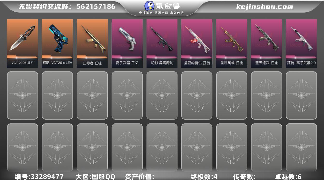【PTWW3796】终极*4/卓越*6/皮肤*29/等级*28/段位:青铜/VCT 2026 赛季套装/炼狱/壹决/捷风/幽影/不死鸟/贤者/猎枭/零/尚勃勒/K/O/VCT 2026 篆刀/黑波之刃/狂徒-归零者/狂徒-堕天遗武/狂徒-盖世英雄/狂徒-盖亚的复仇/狂徒-离子武器2.0/幻影-异鳞魔蛇/标配-VCT26 x LEV/正义-离子武器/无畏契约GO!第一卷:芮娜 卡面/无畏契约GO!第一卷:零 卡面/代号红色 卡面/新兵报到 卡面/V契约 卡面/无畏契约 卡面/审判之爪 喷漆/买装还是存钱 喷漆/无畏契约GO!第一卷:零 喷漆/无畏契约GO!第一卷:贤者 喷漆/胜利属于无畏契约 喷漆/GLHF 喷漆/无畏契约 喷漆/天外飞客 挂饰/无畏契约 纪念币 挂饰