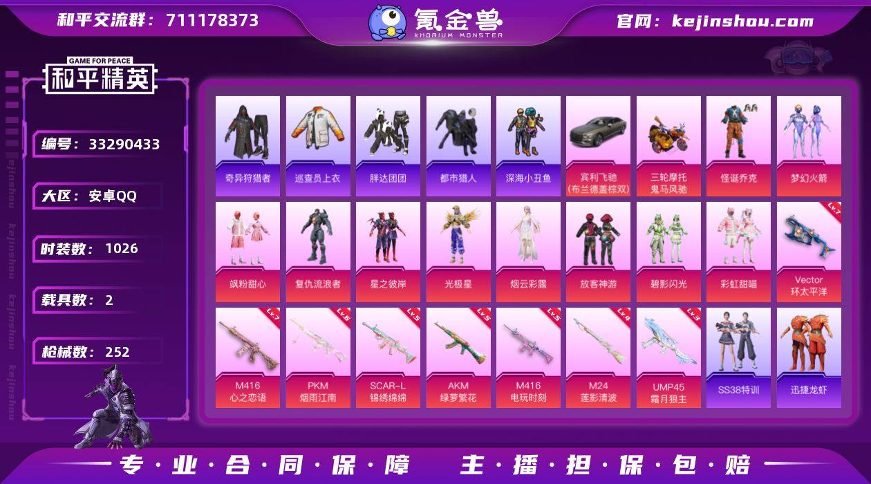 和平精氪男神号,怪诞乔克,火箭少女,发光眼罩,都市猎人,国宝头盔和熊猫背包,还有2载具,冰狼飞行器,大肘子必备