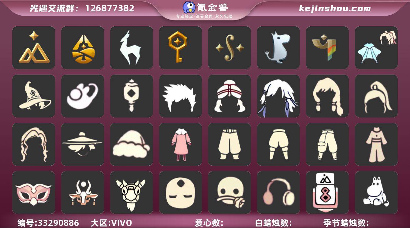 巫师帽武士裤透明蛛丝斗玉兔拖鞋阔腿牛仔裤盘龙围巾斗大耳狗头饰"资源:蜡烛71 爱心29 红烛27 翼12 已毕业地图:晨岛 云野 雨林 霞谷 暮土 禁阁 毕业季节:风行季卡 潜海季卡 追忆季卡 半王子季 半青鸟季 拾光季 归巢季 九色鹿季 筑巢季 二重奏季 姆明季 彩染季 毕业季节物品:粗框眼镜 季卡相机 西部帽 五塑彩羽发 五塑彩带斗 九色鹿丸子头 九色鹿丝带裤 九色鹿飞天斗篷 设计师长袍 光之子试衣 合奏挂画 蓝色燕尾服 白色高脚钢琴 姆明抱枕 姆明大伞 姆明长裙 彩染围巾斗篷 辉光羚羊面具 稀有礼包:阔腿牛仔裤 玉兔拖鞋 巫师帽 青衫落拓礼包 橘子发饰 贝壳发卡 玉兔发饰 大耳狗头饰 心心相印头饰 巫树犄角 金鳞耳坠 锦鲤斗篷 盘龙围巾斗篷 透明蛛丝斗篷 冥龙南瓜 中秋灯笼 热门裤子:奔月长裙 妮妮裙子 海浪阔腿裤 白棉裤 搓澡巾 紧身连体衣 武士裤 王子服 小丑服 美工衣 流珠红色连 探险燕尾礼 热门面具:矮人面具 盲僧眼罩 辉光羚羊面具 青鸟面具 龙头 玫瑰花面具 黑脸 鸟羽面饰 热门发型:海草头 爆炸头 大胡子 小飞象 雨妈 卡卡 平菇 龙骨 指甲盖 蝴蝶结 公主头 粗辫 水母头 书虫 总裁头 正太头 高马尾 明制帽 郡主头 箬笠 虚荣 军帽 小王子...