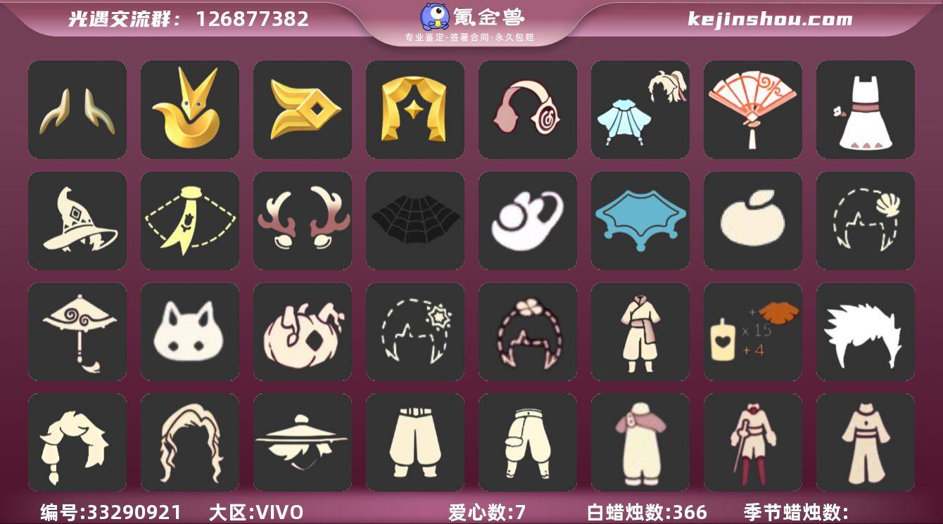 账号类型: 手机账号 季节已毕业: 小王子季,风行季,表演季,织光季 完成地图: 晨岛,云野,雨林,霞谷,暮土,禁阁 珍稀物品: 白枭,玫瑰花 礼包: 巫师,围巾,鹿角,蜘蛛斗,兔子鞋,瑞雪,橘子,贝壳,红伞,兔子,南瓜,雪花,四叶草,暗彩装扮,创始人,向日葵连衣裙,献瑞折扇礼包,青衫落拓礼包,云音伴游耳机 裤子: 武士裤,背带裤,搓澡巾,击剑裤,王子服 面具: 裂纹面具,贴花面具,黄眉企鹅面具 面饰: 红耳机 发型: 若笠,虚荣,单侧绑发,小王子发型 头饰: 行军锅头盔,羽毛发饰,平顶帽 斗篷: 黄色蓑衣,海洋斗,绿芽,燕尾斗篷 配饰: 玫瑰花 亮点: 【优质装备】:表演季,白枭(帝企鹅发),武士裤,小王子季(王子季),风行季,行军锅头盔(六边锅帽子)(双耳锅帽子),羽毛发饰(多羽发饰),玫瑰花,王子服(小王子套装),贴花面具(丛林黑面具),黄眉企鹅面具,单侧绑发(单边小辫),小王子发型,燕尾斗篷,红耳机,围巾(小王子斗篷)(小王子围巾),鹿角(圣诞鹿角),蜘蛛斗(蛛丝斗篷)(蛛网斗篷),瑞雪(瑞雪斗篷)(暖冬瑞雪),红伞(瑞气纸伞),暗彩装扮(彩虹武士裤),巫师(巫师帽),晨岛,云野,雨林,霞谷,墓土(暮土),禁阁,若笠(箬笠),兔子鞋(兔子拖鞋),向日葵连衣裙(连衣裙),创始人(创始人斗篷),献瑞折扇礼包,青衫落拓礼包,兔子(玉兔头饰)(...