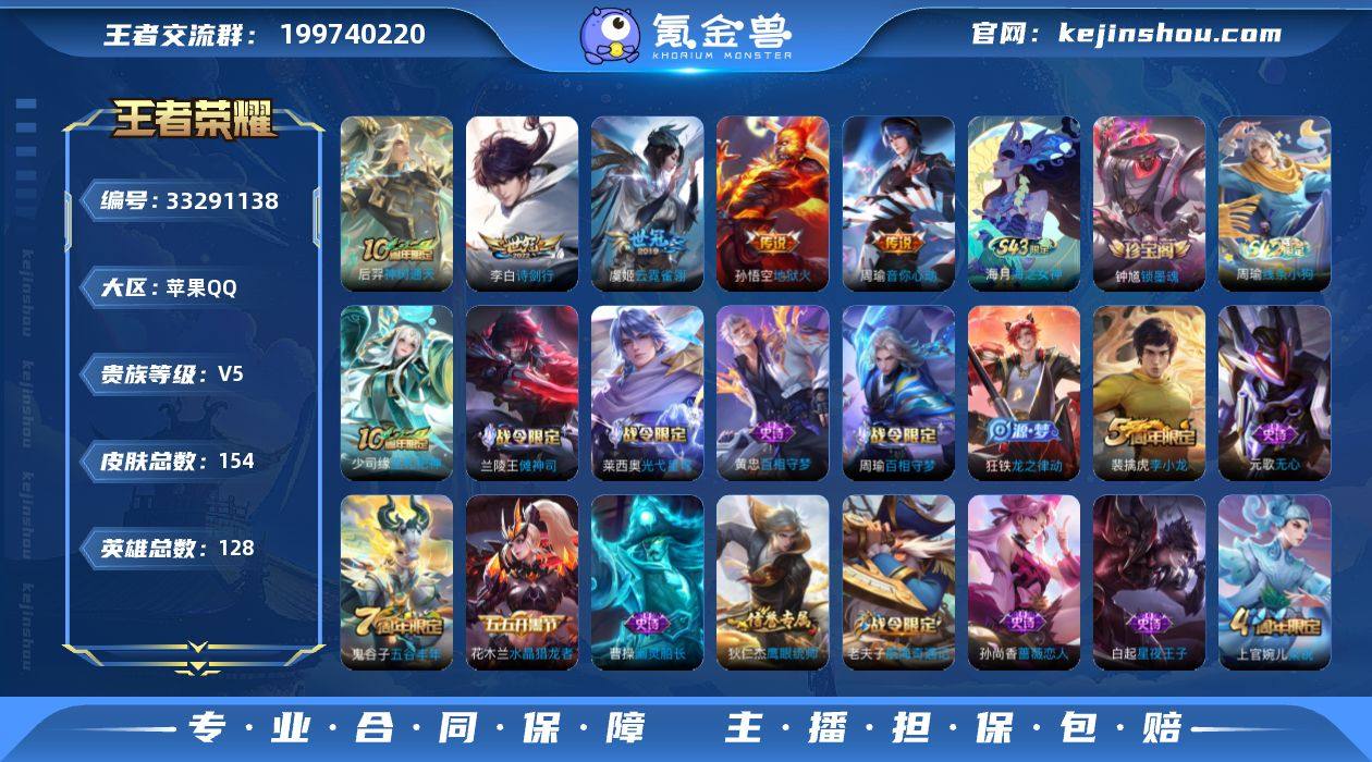 不可二次 苹果Q-V6-永恒钻石IV段位-128英雄-154皮肤-5传说-37史诗 QW2641004 【传说皮肤】:后羿神树通天,李白诗剑行,周瑜音你心动,虞姬云霓雀翎,孙悟空地狱火 【限定皮肤】:狄仁杰阴阳师,赵云皇家上将,墨子神迹守卫,孙尚香蔷薇恋人,元歌无心,夏侯惇朔风刀,甄姬游园惊梦,狄仁杰魔术师,狄仁杰万华元夜,达摩沙漠行僧,项羽海滩派对,老夫子醍醐杖,老夫子航海奇遇记,程咬金演武夺筹,兰陵王金庭之子,牛魔御旌,李元芳云中旅人,钟馗驱傩正仪,鬼谷子原初探秘者,鬼谷子五谷丰年,弈星混沌棋,沈梦溪大漠名商,明世隐疑决卦,裴擒虎李小龙,狂铁御狮,米莱狄御霄,米莱狄胡桃异想国,盾山御銮,上官婉儿梁祝,沈梦溪龙舞盛年 【赛季限定】:狂铁御狮,米莱狄御霄,牛魔御旌,盾山御銮,夏侯惇朔风刀,弈星混沌棋,明世隐疑决卦,老夫子醍醐杖,鬼谷子原初探秘者,狄仁杰万华元夜,程咬金演武夺筹,钟馗驱傩正仪,达摩沙漠行僧,兰陵王金庭之子,沈梦溪大漠名商,李元芳云中旅人,东皇太一噬灭天穹,甄姬逆浪荇歌,亚瑟荣光之誓 【战令限定】:米莱狄胡桃异想国,老夫子航海奇遇记,墨子神迹守卫,周瑜百相守梦,孙策百相守梦,兰陵王傩神司,莱西奥光弋星穹,明...