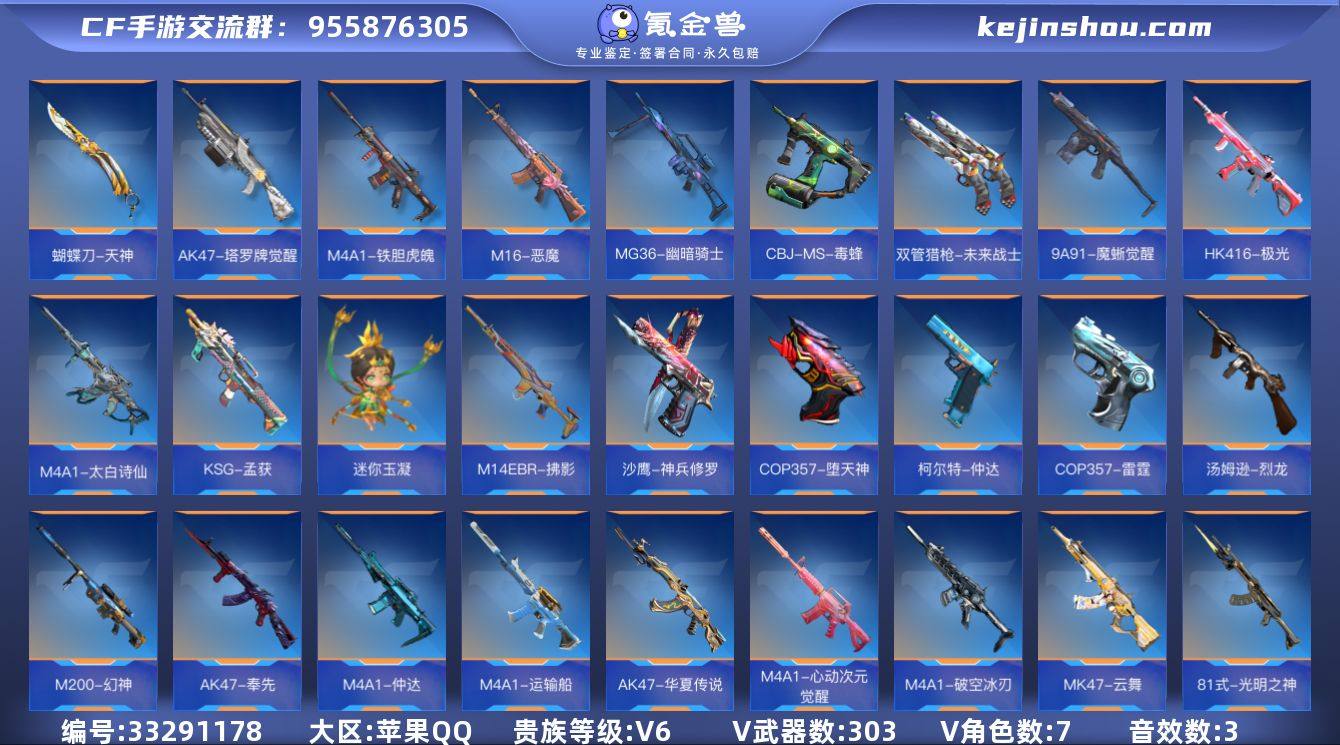 VIP6/303V/王者之影/王者之蝶/王者之誉/王者之尊/M200-权/KSG-孟获/CZS2-仲康/COP357-安琪拉/AN94-盖/81式-光明之神/M4A1七色宝葫/M4A1-仲达/AK47-奉先/M200-幻神/81式-阿波罗/COP357-雷霆/COP357-堕天神/AK47-奉先-无双/M4A1-七色宝葫-黑曜/M4A1-仲达-烽火连城/巴雷特-毁灭-现代战场/M4A1-雷神-电音/AK47-无影-电音/AWM-裁决-流光之线/狙击枪线-遁天梭/零/幽灵刀锋-觉醒/瞳/关小雨/夏日灵狐-X/零-新生/刀锋-枪战王者/AK47-猩红传说/AK47-幸运日/AK47-燎天净火/AK47-心动次元/AK47-血武士/AK47-华夏传说/AK47-黑鲨/AK47-木兰/AK47-塔罗牌觉醒/AK47-谜城烟火/M4A1-雷神/M4A1-黑骑士/M4A1-死神/M4A1-玫瑰精灵/M4A1-樱龙·一觉/M4A1-变色龙/M4A1-赛博雷神/M4A1-破空冰刃/M4A1-堕天神/M4A1-心动次元觉醒/M4A1-运输船/M4A1-猎神/M4A1-夏清/M4A1-千变/M4A1-太白诗仙/M4A1-铁胆虎魄/SCAR-幽暗骑士/SCAR-探星者/SCAR-心动PICK/AN94-四凶觉醒/AN94-精卫填海/AUG-机械纪元/9A91-天神/9A91-魔蜥觉醒/M14EBR-拂影/M14EBR-葫芦山庄/M16-恶魔/AK12-天启/QBZ03-金色蔷薇/QBZ03-死神/HK416-混世行者/HK416-极光/HK417-炎龙铠甲/G36-李星云/MK47-云舞/G3A3-衍神兵/QBZ97-浩瀚征途/QBZ191-封神榜...