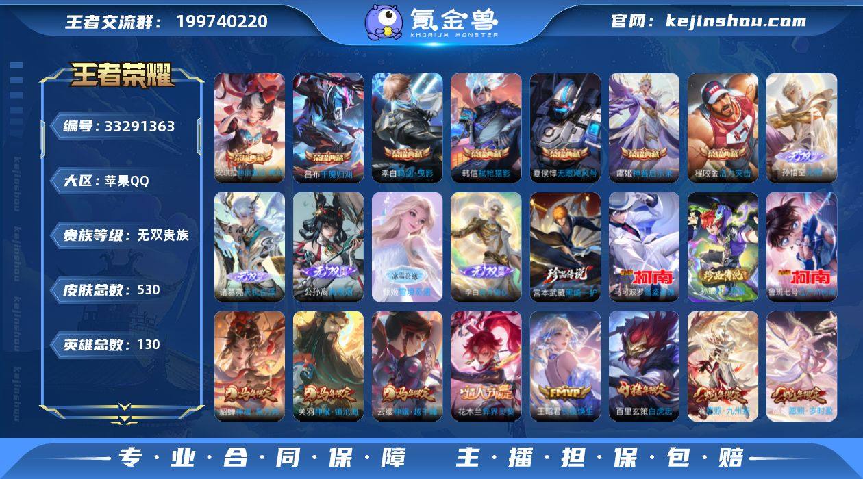 无二次-苹果Q无双V10-永恒钻石III段位-130英雄-530皮肤-7典藏皮肤-1典藏英雄-5无双-4珍品传说-67传说-178史诗(无双贵族5.1到期) 【英雄全皮】:嬴政全皮,李白全皮,姜子牙全皮,刘邦全皮,孙权全皮,刘备全皮,苍全皮,百里玄策全皮,狂铁全皮,敖隐全皮,澜全皮,夏洛特全皮,司空震全皮,戈娅全皮,空空儿全皮,海诺全皮 【荣耀典藏】:武则天英雄,夏侯惇无限飓风号,程咬金活力突击,李白鸣剑曳影,韩信弑枪猎影,虞姬神鉴启示录,吕布千魇归渊,安琪拉颠倒童话魔镜 【无双皮肤】:孙悟空无相,诸葛亮天机白泽,甄姬雪境奇遇,公孙离离恨烟,李白碎月剑心 【珍品传说】:宫本武藏黑崎一护,孙策时之奇旅,鲁班七号江户川柯南,马可波罗怪盗基德 【传说皮肤】:云缨神骥越千峰,关羽神骥镇沧海,貂蝉神骥聚万邦,花木兰异界灵契,王昭君长夜焕生,司空震愿照山河定,女娲愿照千秋盛,妲己愿照众生和,澜愿照九州拓,蔡文姬愿照福禄聚,虞姬愿照岁时盈,云缨幻光神枪,裴擒虎祥瑞亨通,嬴政玄雷天君,桑启鸣野蒿,庄周牧神诗旅,夏侯惇霜北刀,墨子黄金天蝎座,海月金乌负日,典韦战鼓燎原,孙尚香乘龙问璇玑,孙策乘龙淬吴钩,赵云乘龙铭钟鼎,澜逐花归海,艾琳觅芳踪,...