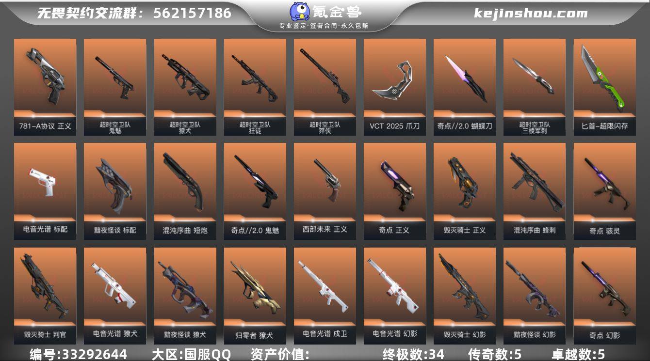 L3267【性价比】威龙之刃 超时空套装 电音套装 vct爪刀 西部正义 显卡飞将 鬼丸国纲 班若2.0套装 毁灭套装 超限匕首 781正义 奇点套装 奇点2.0套装 黯夜套装 混沌套装 库存: 86380剩余VP:0剩余R点:0 段位:未定级历史最高:砖石1