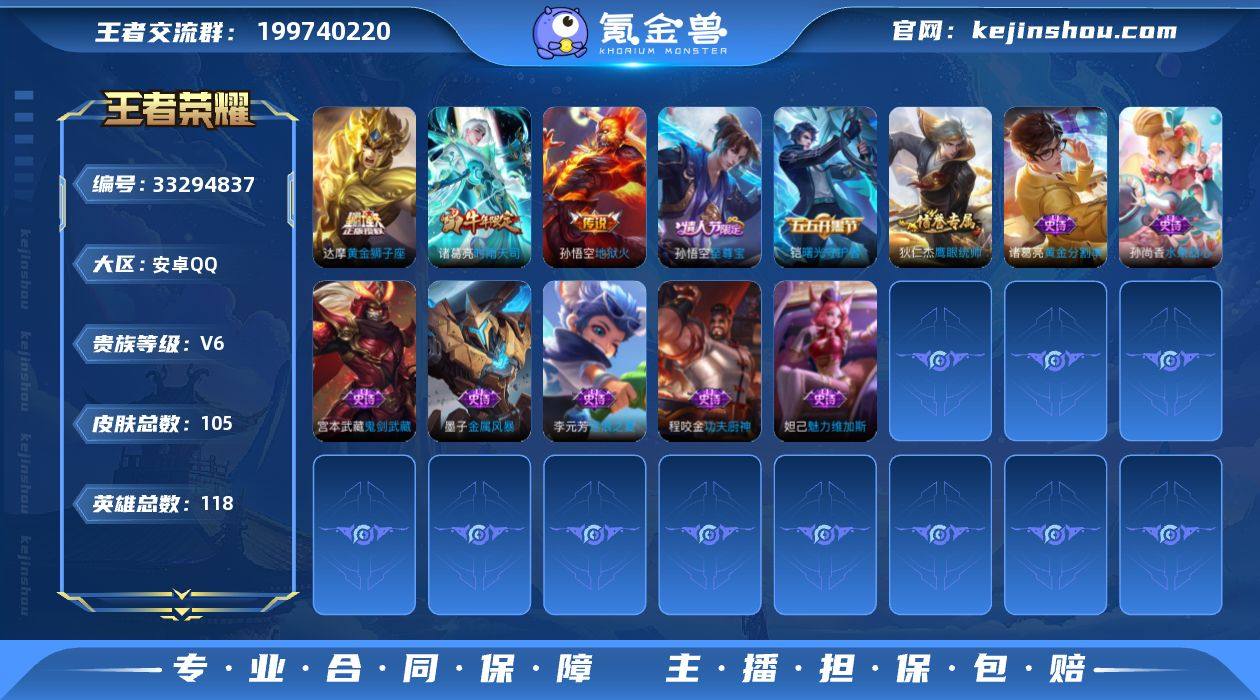 英雄 105皮肤 可二次 可修改实名 男号