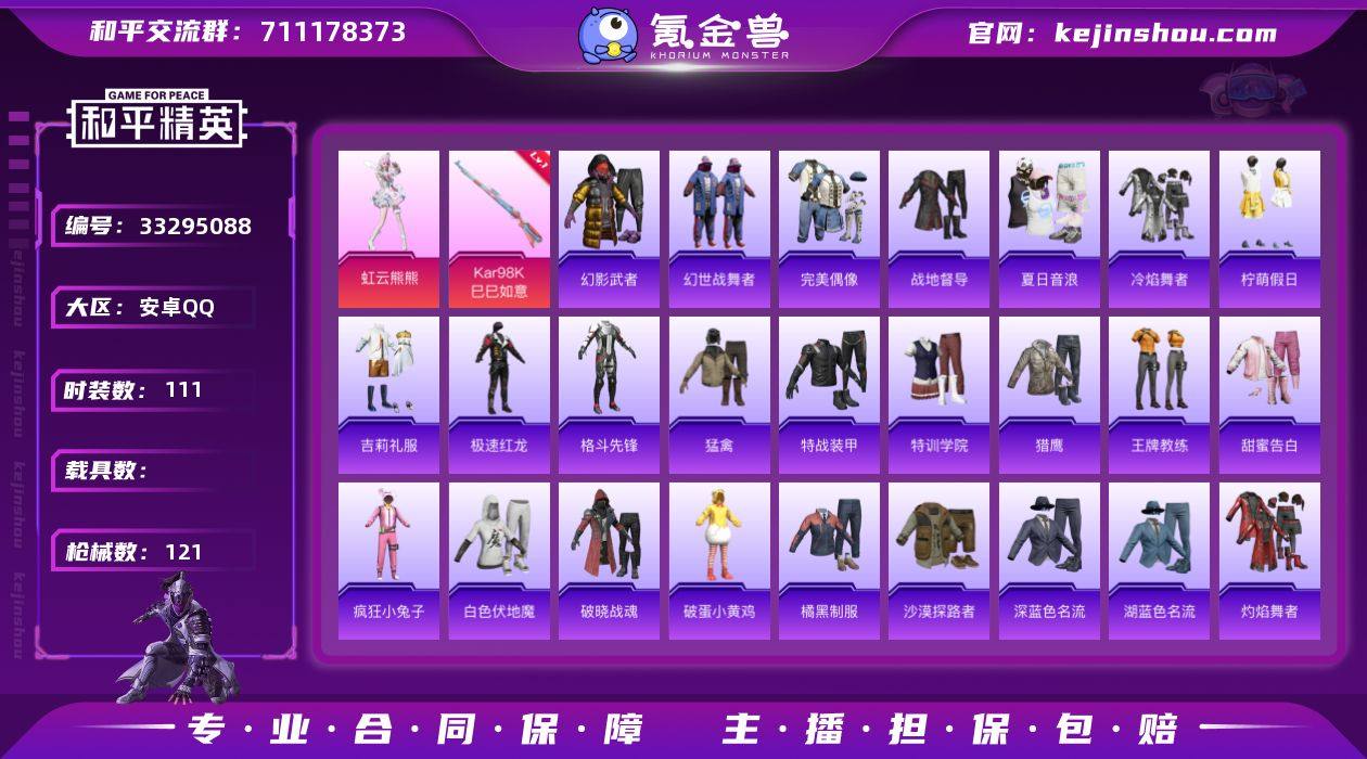 安卓Q区-1粉2满级特效5飞行器 王者44皮1传说 无二次协助【2太阳 地铁已开 虹云熊熊 瑰石海星 超感刻度 甜心蒙太奇 俏兔智灵 星河入梦】-32946热力值-3王牌印记-102套装-121枪皮-黄金I-游戏57级 【优质套装】: 虹云熊熊 【特效枪等级】:Kar98K-巳巳如意(五级- Kar98K-巳巳如意) 【优质武器皮肤】: Kar98K-巳巳如意 【稀有武器皮肤】: DBS-乌木金纹 SCAR-L-海盐豹豹 Kar98K-巳巳如意 Mk14-冰河战士 UZI-冰河战士 20-H-乌木金纹 蜜獾-乌木金纹 PKM-啾咪啾咪 M416-红色方程式 M416-蓝色火焰 M416-糯团青竹 AKM-破晓战魂 AKM-龙的传人 AKM-虎虎生威 AKM-萌趣颜团子 SCAR-L-红色方程式 SCAR-L-玉兔迎春 SCAR-L-炫彩节奏 M16A4-红色方程式 M16A4-蓝色火焰 M16A4-幻世战舞者 AUG-幻影战神 AUG-耀粉歌者 AUG-青春冒险家 QBZ-彩虹符号 M762-瑞龙福将 M762-绯红前夜 M762-天降萌叽 Mk47-乌木金纹 Mk47-炫光之旅 Mk47-青春冒险家 G36C-乌木金纹 G36C-暗夜玫瑰 AC-VAL-天降萌叽 AC-VAL-乌木金纹 蜜獾-垂柳戏鸭 蜜獾-娇憨猪猪 Kar98K-乌木金纹 Kar98K-梦幻火箭 Kar98K-红色方程式 Kar98K-彩虹符号 Kar98K-炫彩节奏 M24-乌木金纹 AWM-王牌四分卫 Win94-瑞龙福将 莫辛纳甘-乌木金纹 莫辛纳...