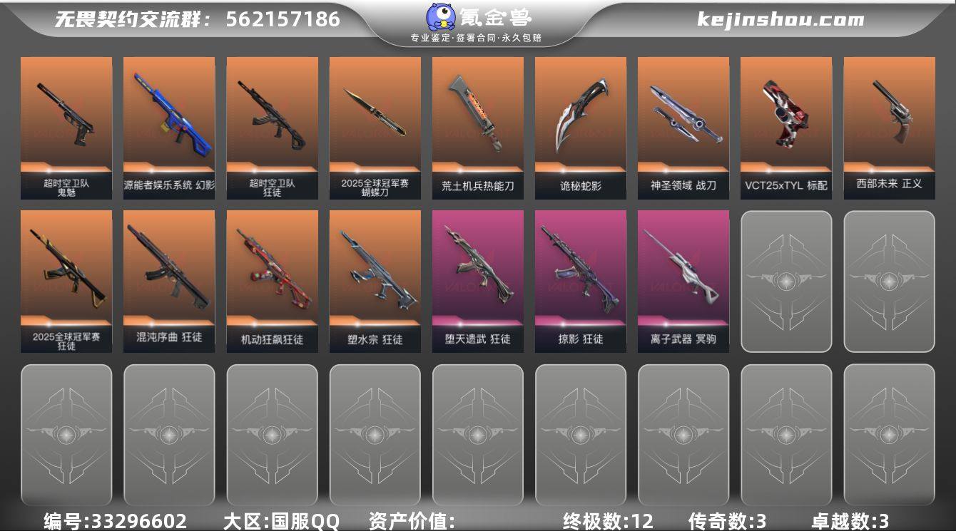 【qyz9648】包人脸 玩够能回血 25套 镭切 qyz9648 【近战武器】:近战武器-2025全球冠军赛 蝴蝶刀,近战武器-镭切,近战武器-荒土机兵 热能刀,近战武器-生物分子解离器,近战武器-诡秘蛇影 军刀,近战武器-神圣领域 战刀 【狂徒】:狂徒-2025全球冠军赛,狂徒-混沌序曲,狂徒-机动狂飙,狂徒-塑水宗,狂徒-超时空卫队,狂徒-堕天遗武,狂徒-掠影,狂徒-荒土机兵,狂徒-诡秘蛇影 【幻影】:幻影-源能者娱乐系统,幻影-神圣领域,幻影-纳米打击,幻影-末日之翼 【戍卫】:戍卫-逆冲蛮牛,戍卫-月球哨兵,戍卫-折光棱晶 【獠犬】:獠犬-神圣领域,獠犬-逆冲蛮牛 【冥驹】:冥驹-离子武器,冥驹-荒土机兵,冥驹-星云暗涌 【飞将】:飞将-末日之翼 【莽侠】:莽侠-诡秘蛇影,莽侠-月球哨兵 【战神】:战神-神圣领域 【奥丁】:奥丁-纳米打击,奥丁-末日之翼 【判官】:判官-诡秘蛇影,判官-纳米打击x 【雄鹿】:雄鹿-逆冲蛮牛,雄鹿-月球哨兵 【骇灵】:骇灵-荒土机兵,骇灵-星云暗涌 【蜂刺】:蜂刺-星云暗涌,蜂刺-折光棱晶 【标配】:标配-荒土机兵,标配-折光棱晶 【VCT手枪】:标配-VCT25 x TYL 【正义】:正义-西部未来,正义-纳米打击,正义-游戏结束,正义-月球哨兵...