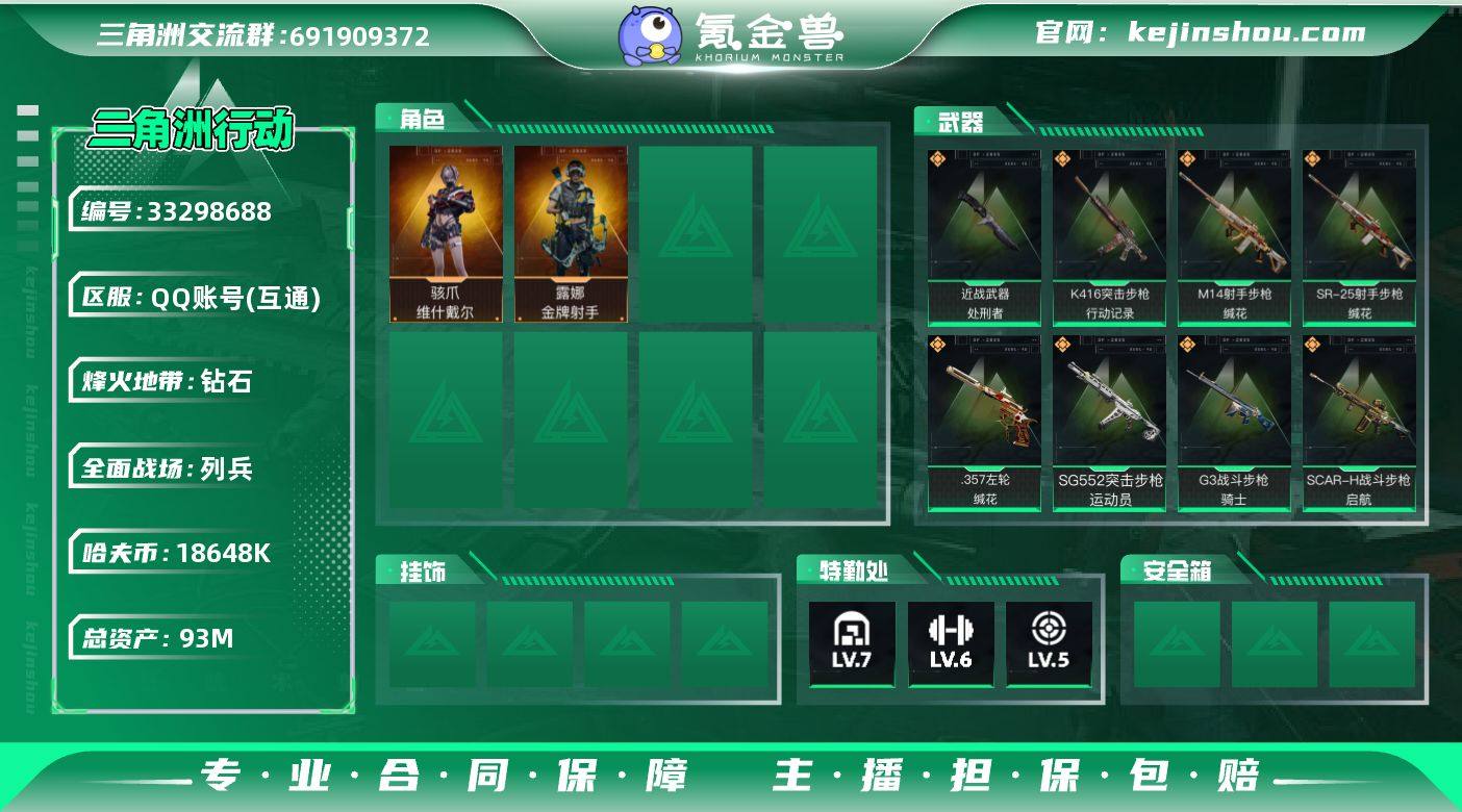 【SJZD3649】总资产(M):93M/哈夫币(K):18648K/哈夫币(K):18648K/传说枪皮数:17/全面战场等级:18_段位:列兵/烽火地带等级:60_段位:钻石/骇爪-维什戴尔/露娜-金牌射手(S7)/近战-处刑者/近战-黑鹰/M4A1突击步枪-阿米娅/K416突击步枪-行动记录/SG552突击步枪-运动员/SCAR-H战斗步枪-启航/G3战斗步枪-骑士/腾龙突击步枪-捞点薯条/K437突击步枪-几何解构/Vector冲锋枪-能天使-午夜邮差/勇士冲锋枪-能天使-午夜邮差/QJB201轻机枪-鹅鸭杀/M14射手步枪-蛮荒/M14射手步枪-缄花/SR-25射手步枪-缄花/R93狙击步枪-维什戴尔/AWM狙击步枪-捞点薯条/.357左轮-缄花/93R-捞点薯条/P90冲锋枪-暗鸦(典藏)/K416突击步枪-冬日风情/K416突击步枪-阿萨拉特攻/M16A4突击步枪-竞赛选手/AUG突击步枪-蝮蛇/M7战斗步枪-百步穿杨/SCAR-H战斗步枪-囚徒/G3战斗步枪-流沙送葬/G3战斗步枪-哈夫克警备/AS Val突击步枪-百步穿杨/腾龙突击步枪-猎鳄行动/腾龙突击步枪-聚光灯/MP5冲锋枪-深海恐惧/MP5冲锋枪-战术竞备/MP5冲锋枪-竞技风/Vector冲锋枪-百步穿杨/Vector冲锋枪-异域战争/SMG45冲锋枪-阿萨拉特攻/勇士冲锋枪-工业狂潮/MP7冲锋枪-六套之力/S12K霰弹枪-曙光/PKM通用机枪-蝮蛇/PKM通用机枪-阿萨拉特攻...