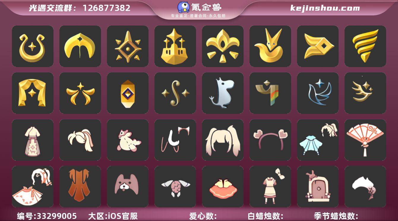 账号类型: 手机账号 季节已毕业: 魔法季,圣岛季,预言季,梦想季,小王子季,风行季,潜海季,表演季,欧若拉季,集结季,追忆季,二重奏季,姆明季,彩染季,青鸟季,迁徙季 完成地图: 晨岛,云野,雨林,霞谷,暮土,禁阁,全图毕业 珍稀物品: 阿努比斯(狗头),白枭,透明蝶翼斗,魔法季耳坠,玫瑰花 礼包: 蝙蝠套,巫师,围巾,星球斗,小狐狸,欧若拉之翼,音乐桌,绊爱,大铁头,鹿角,蜘蛛斗,牛仔裤,兔子鞋,运动鞋,秋千,茶桌,茶壶,餐桌,白绒金,瑞雪,女巫裙,福娃,跷跷板,小船,吉他,灯笼,风之旅人,奔跑裤子,致爱装扮,人声乐器,奔跑发型,鲤鱼套,彩虹帽,雪花球,绒帽,橘子,粽叶,贝壳,黄伞,红伞,兔子,南瓜,枯角,雪花,鲤鱼,tgc,猫套,猫背饰,星月头饰,彩虹耳钉,彩虹耳机,雪怪斗,球赛门,新年裤,魔法棒,暗彩装扮,向日葵套,小提琴,拖鞋,爱心眼镜,透明蛛丝,雪人鞋,新年耳钉,创始人,海蓝波浪发型,飞鸟纸伞,日光耳环,锦标赛桂冠,线框斗,姆明饰品套装,史力奇帽子,恶作剧飞行扫帚,蛛网朋克,仙境茶会门扉礼包,爱丽丝围裙套装礼包,妮妮斗篷,海龟斗篷,衔福献瑞礼包,献瑞折扇礼包,渐变双马尾发型礼包,心心相印发饰礼包,小狗周年发饰,奉献斗篷,青衫落拓礼包,皮皮猫套装礼包,琅骏启岁长裙礼包,宝骏丹心马尾礼包,骐骥迎福礼包 裤...