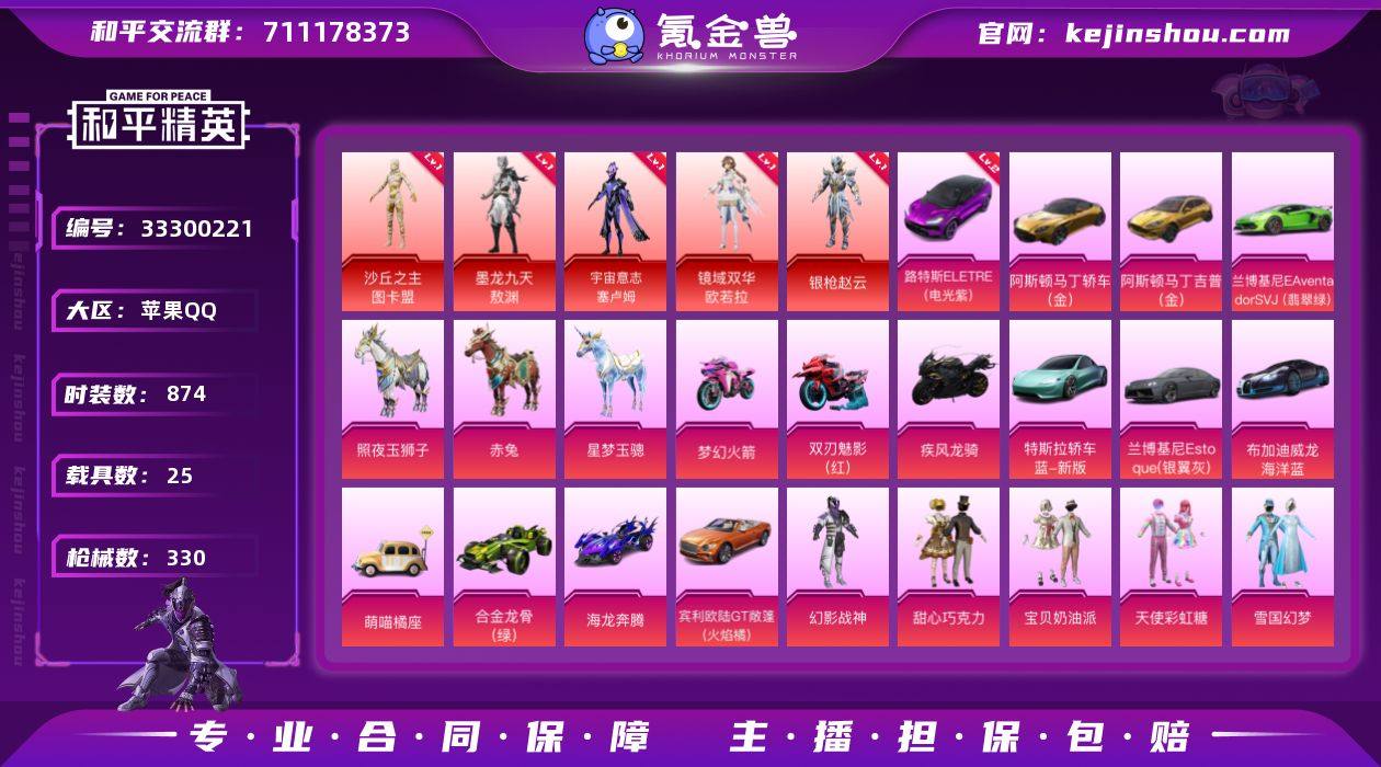 【948606】[18388389]9红装 48粉装 33特效枪 25载具 13印记 可二次 可修改实名 【六级神装】六级灵驹仙姬-云歌 【一级神装】一级宇宙意志-塞卢姆,一级银枪赵云,一级暮色玫影-艾丽娅,一级魔童闹海-敖丙,一级魔童闹海-哪吒,一级墨龙九天-敖渊,一级沙丘之主-图卡盟,一级镜域双华-欧若拉 【九级特效枪】九级GROZA-无垠阁(满级),九级AUG-花中眠(满级),九级M416-至情至圣(满级至情至圣M416) 【热门装扮】樱桃泡泡,绝对恒星,初号机款机体服(紫螳螂),梦幻火箭(新101) ,洛天依,雪国幻梦(冰雪女王),甜心巧克力,花间之火,天使彩虹糖,蝶舞迷情,幻影战神,宝贝奶油派,缤纷油彩(猪妹猪脸妹),甜蜜誓约,新星烈龙(小白龙),草莓生巧,心之恋语,童趣迷兔,相思残雪,星之信仰,诡面斩,金属狂野,暗翼战神,炙焰红王,锦绣火鲤,冰霜白皇,彗云及圣,迷蝶贵族,绚金战神,俏皮狐尾,扶摇飞仙,天禅智恒,绮梦青鸾,焰龙焚天,炙焰赤龙,虎啸骄阳,铁血龙王,桀骜红莲,山涧鹿灵,精灵娃娃,酣梦娃娃,甜心娃娃,银龙傲海,骨龙祭渊,莲影清波,暖暖奶龙,紫钛骑兵,星梦奇缘,怪兽之王,万圣娃娃,暗夜魅影 【载具】星梦玉骢,九霄玄鹿,冰绡玉鳞,僚机-冰龙团团,暮色幽蹄,踏焰逐风摩托车,糖心拉力赛车(波动紫),阿斯顿·马丁DBS(金),路特...