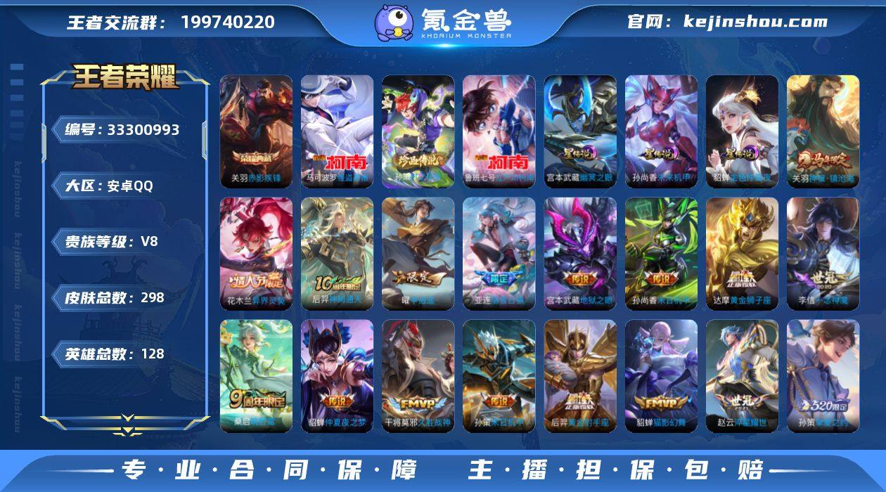 王者20649,无二次,钱包未注销,安卓Q-V8-永恒钻石II段位-128英雄-298皮肤-1典藏皮肤-3珍品传说-22传说-75史诗 【英雄全皮】:狂铁全皮,敖隐全皮,金蝉全皮 【荣耀典藏】:关羽赤影疾锋 【珍品传说】:孙策时之奇旅,鲁班七号江户川柯南,马可波罗怪盗基德 【传说皮肤】:关羽神骥镇沧海,花木兰异界灵契,后羿神树通天,桑启鸣野蒿,亚连落雪白狼,孙策挚爱之约,蔡文姬花朝如约,孙策末日机甲,赵云淬星耀世,曜李逍遥 ,铠绛天战甲,虞姬启明星使,李信一念神魔,貂蝉猫影幻舞,干将莫邪久胜战神,达摩黄金狮子座,花木兰冠军飞将,后羿黄金射手座,貂蝉仲夏夜之梦,孙尚香末日机甲,宫本武藏地狱之眼,孙悟空地狱火 【限定皮肤】:白起狰,姜子牙天穹之誓,狄仁杰阴阳师,赵云皇家上将,嬴政优雅恋人,钟无艳超时空战士,白起夜都怪侠,芈月重明,夏侯惇朔风刀,夏侯惇匿光决锋者,甄姬落雪兰心,曹操烛龙,典韦穷奇,典韦蓝屏警告,狄仁杰魔术师,狄仁杰万华元夜,达摩沙漠行僧,项羽海滩派对,老夫子醍醐杖,关羽冰锋战神,程咬金演武夺筹,王昭君午后时光,兰陵王金庭之子,花木兰瑞麟志,孙悟空孙行者,牛魔御旌,李元芳云中旅人,虞姬霸王别姬,虞姬启明星使,钟馗...