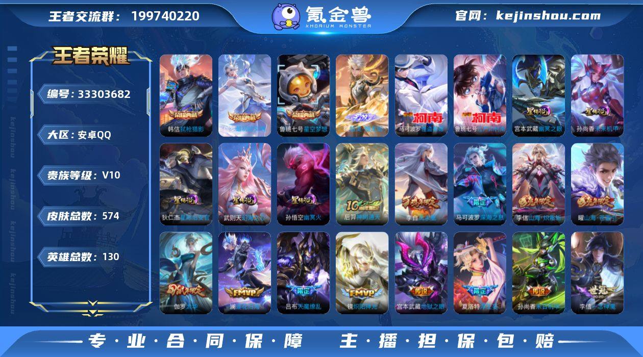 MCK633890 【V10!曜无双!伽罗+韩信典藏!基德+柯南!】 皮肤数量574 印记总数28 【V10】 【永恒钻石】 【可修改】 账号类型4 无双1 荣耀典藏4 珍品2 星元皮肤5 传说54 史诗203 账号类型:打野号,射手号,中单号,上单号; 无双:曜_器灵螭龙剑; 荣耀典藏:伽罗_最初的交响,韩信_弑枪猎影,鲁班七号_星空梦想,武则天_英雄; 珍品:鲁班七号_江户川柯南,马可波罗_怪盗基德; 星元皮肤:武则天_幻海之心,宫本武藏_幽冥之眼,孙悟空_幽冥火,狄仁杰_星际治安官,孙尚香_未来机甲; 传说:后羿_黄金射手座,后羿_神树通天,云缨_幻光神枪,嬴政_玄雷天君,桑启_鸣野蒿,海月_金乌负日,宫本武藏_地狱之眼,花木兰_冠军飞将,澜_逐花归海,艾琳_觅芳踪,上官婉儿_妄想奇谈,马可波罗_妄想实况,东皇太一_灼幽烈阳,孙策_末日机甲,诸葛亮_鹤羽星尊,澜_电玩雷克斯,张飞_百相守梦,公孙离_记忆之芯,夏洛特_浮生妄,干将莫邪_画中仙,花木兰_燃星之曲,项羽_无限倾心,虞姬_无限倾心,伽罗_炽翼辉光,孙悟空_齐天大圣,小乔_山海琳琅生,吕布_怒海麟威,李白_诗剑行,狄仁杰_神器·狴犴令,诸葛亮_时雨天司,狄仁杰_超时空战士,百里守约_碎云,马可波罗_深海之息,马超_无双...