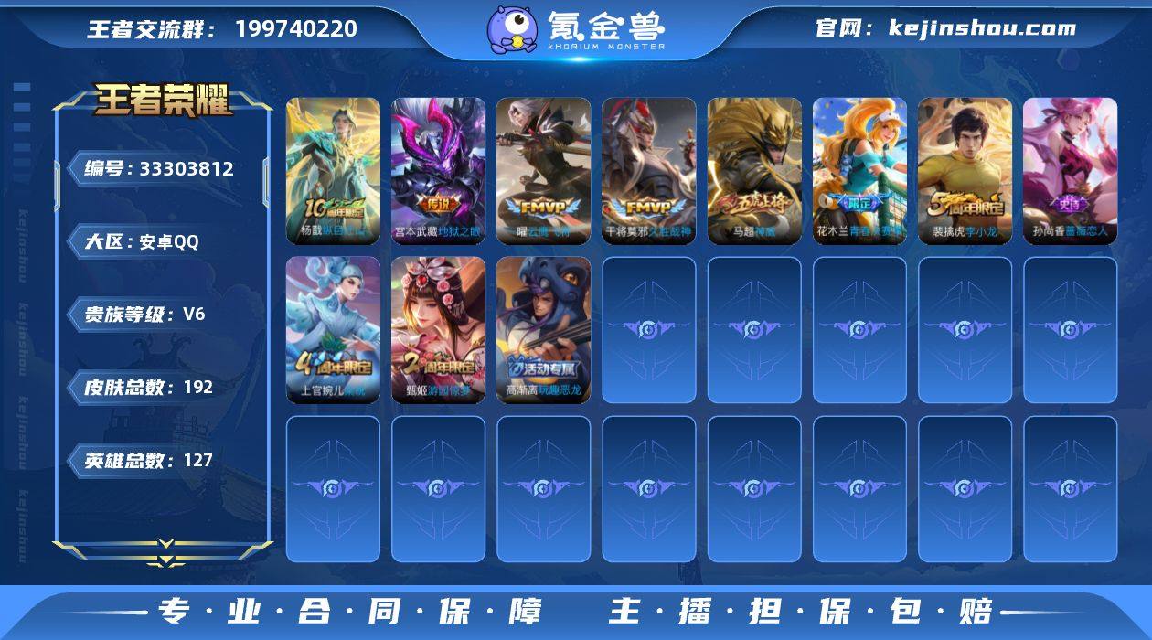 安卓Q 可二次 5传说 2星传 幽冥之眼 金貂蝉 127英雄192皮肤 纵目迁山 时之祈愿女 云鹰飞将 久胜战神 地狱之眼 万灵启世 神威 逐霄之志 青春决赛季 拒霜思 冰冠公主 梁祝 云间偶戏 黄忠百相守梦 燃音魔法 天秀启明 原初探秘者 李小龙 水晶猎龙者 暗隐猎兽者 曙光守护者 特工战影 蔷薇恋人 玩趣恶龙 舞动绿茵 逐浪之夏 千年之狐 紫霞仙子 功夫厨神 幽灵船长 星夜王子 节奏热浪 暗夜贵公子 偶像歌手 街头霸王 鬼剑武藏 御銮 朔风刀 混沌棋 疑决卦 醍醐杖 万华元夜 克喵 演武夺筹 群星魔术团程咬金 驱傩正仪 未来纪元赵云 千军破阵 拳王 沙漠行僧 金庭之子 霸王丸 大漠名商 敏锐之力 云中旅人 丁香结 海盐诗旅 皇家上将 擒涛扼浪 魅力维加斯 探海日志 水果甜心 古海寻踪 天穹祈灯 无心 荣光圣徽 纤云弄巧 胡桃异想国 游园惊梦 航海奇遇记 鹰眼统帅 魔术师 王者荣耀账号