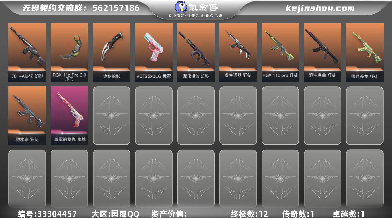 【NF461】【英雄】:幻棱,炼狱,维斯,暮蝶,钛狐,壹决,捷风,幽影,不死鸟,贤者,猎枭,蝰蛇,芮娜,星礈,盖可 【近战武器】:近战武器-剥皮小刀,近战武器-RGX 11z Pro//3.0 爪刀,近战武器-黑波之刃,近战武器-夜刃诡镰,近战武器-诡秘蛇影 军刀 【狂徒】:狂徒-混沌序曲,狂徒-塑水宗,狂徒-偃月苍龙,狂徒-虚空遗器,狂徒-RGX 11z Pro,狂徒-诡秘蛇影 【幻影】:幻影-黯夜怪谈,幻影-781-A协议,幻影-末日之翼 【戍卫】:戍卫-折光棱晶 【飞将】:飞将-末日之翼 【莽侠】:莽侠-诡秘蛇影 【奥丁】:奥丁-末日之翼 【判官】:判官-诡秘蛇影 【骇灵】:骇灵-无限竞技 【蜂刺】:蜂刺-折光棱晶 【标配】:标配-折光棱晶 【VCT手枪】:标配-VCT25 x BLG 【正义】:正义-纳米打击,正义-游戏结束 【鬼魅】:鬼魅-盖亚的复仇,鬼魅-诡秘蛇影,鬼魅-扑棱扑棱,鬼魅-星云暗涌 【短炮】:短炮-末日之翼 【卡面】:终章:激斗汉堡 卡面,进入射程 卡面,精灵大战 卡面,南瓜盛典 卡面,无畏契约:暮蝶 卡面,热舞环节 卡面,红鳞松叶 卡面,Clutch 卡面,无畏契约GO!第一卷:芮娜 卡面,无畏契约GO!第一卷:零 卡面,无垠星环 卡面,《双城之战》金克丝 卡面,无畏契约GO!...