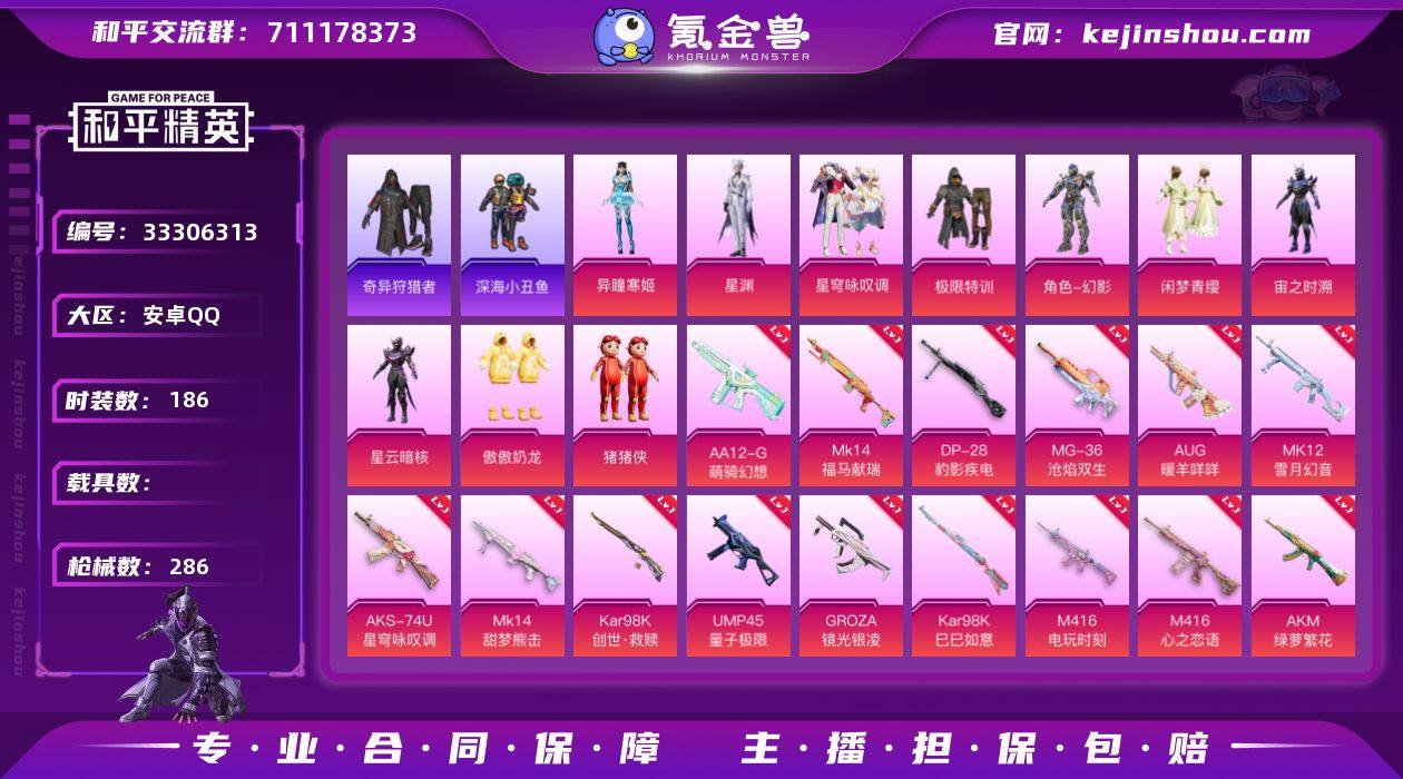 ZMH1348【11粉-17特 蓝螳螂 暗影哥特 深海小丑鱼 小丑鱼 奇异狩猎者 浪漫天命 满级心之恋语】安卓手Q-11粉装-17特效枪-186套装-286枪皮-8王牌印记-坚韧铂金Ⅲ-83749热力值 【11粉装】创世·救赎,极限特训,闲梦青缨,角色-异瞳寒姬,角色-小可学妹,傲傲奶龙,角色-奇迹舞步 美琪,玩偶服-猪猪侠,角色-星云暗核,星穹咏叹调,角色-宙之时溯 【17特效枪】M416-电玩时刻[5级],Kar98K-创世·救赎[4级],GROZA-镜光银凌[5级],Kar98K-巳巳如意[5级],AKS-74U-星穹咏叹调[5级],UMP45-量子极限[5级],MG-36-沧焰双生[5级],M416-心之恋语[7级],AA12-G-萌骑幻想[4级],Mk14-甜梦熊击[5级],SCAR-L-锦绣绵绵[5级],M762-青锋波束[5级],12-雪月幻音[3级],Mk14-福马献瑞[1级],AKM-绿萝繁花[5级],AUG-暖羊咩咩[5级],DP-28-豹影疾电[5级]【10稀有】NV战队服,忍者信条,深海小丑鱼,浪漫天命,奇异狩猎者,暗影哥特,小丑鱼,狂沙舞者,罗小黑,M416-罗小黑【9飞行器】甜梦悠航飞行器,顶峰精英尾迹,雀灵庇佑飞行器,破刃行动尾迹,异域银装飞行器,空岛之星尾迹,光之冒险尾迹,粉色滑翔尾迹,繁龙极客飞行器【2头盔】幻影战神头盔,深海小丑鱼头盔【1背包】幻影战神背包【434其它衣服和枪皮】SS26特训,宝石天鹅,角色-银尘,曼...
