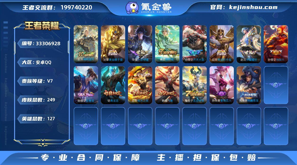 安卓q 可二次 8传说 127英雄 249皮肤 神树通天 鸣野蒿 齐天大圣 淬星耀世 地狱火 一念神魔 黄金狮子座 黄金射手座 涂山容容 至尊宝 青龙志 飞衡 辉光之辰 暗影游猎 电玩小子 龙骑士 黄忠百相守梦 百解令 电玩爆裂旋风 千筹问战 水晶猎龙者 猫狗日记男 猫狗日记女 金属风暴 地狱岩魂 曙光守护者 特工战影 蔷薇恋人 玩趣恶龙 舞动绿茵 逐浪之夏 心灵战警 修罗 晚萤 千年之狐 功夫厨神 心灵骇客 幽灵船长 末日机甲男 星夜王子 节奏热浪 时之恋人女 暗夜贵公子 偶像歌手 街头霸王 摇滚巨星 鬼剑武藏 德古拉伯爵 冰雪圆舞曲 花好人间 御霄 御銮 混沌棋 疑决卦 醍醐杖 万华元夜 演武夺筹 驱傩正仪 未来纪元赵云 重装意志 千军破阵 拳王 沙漠行僧 女仆咖啡 金庭之子 霸王丸 大漠名商 敏锐之力 云中旅人 丁香结 海盐诗旅 皇家上将 擒涛扼浪 魅力维加斯 探海日志 水果甜心 古海寻踪 天穹祈灯 迷踪丽影 超时空战士钟无艳 无心 驭风魔法 星界游侠 荣光圣徽 电玩高手 火炮绅士 五谷丰年 乱世虎臣 航海奇遇记 鹰眼统帅 魔术师 顽趣梦奇 王者荣耀账号