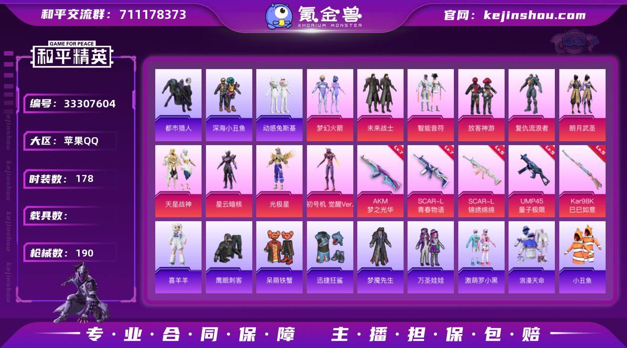 苹果 【精品小号 粉装-梦幻火箭/套装-都市猎人/套装-暗影哥特/蓝螳螂/AKM-梦之光华(七级)/SCAR-L-青春物语(七级)/梦幻火箭背包/百万伏特背包】手Q-10粉装-5特效枪-0载具-0粉色飞行器-62954热力值-9王牌印记-178套装-190枪皮 【热门品类】:粉装-梦幻火箭,套装-浪漫天命,套装-都市猎人,套装-深海小丑鱼,套装-小丑鱼,角色-军刀雅典娜,套装-动感兔斯基人偶服,套装-龟仙人,套装-暗影哥特,角色-8号机,角色-Mark.06 【粉色套装】:粉装-未来战士,粉装-梦幻火箭,粉装-智能音符,粉装-放客神游,角色-复仇流浪者,粉装-朗月武圣,粉装-天星战神,角色-星云暗核,角色-光极星,角色-初号机 觉醒Ver. 【粉色枪皮等级】:AKM-梦之光华(七级),SCAR-L-青春物语(七级),SCAR-L-锦绣绵绵(五级),UMP45-量子极限(五级),Kar98K-巳巳如意(五级) 【粉色枪皮】:AKM-梦之光华,SCAR-L-青春物语,SCAR-L-锦绣绵绵,UMP45-量子极限,Kar98K-巳巳如意 【粉色降落伞】:百万伏特降落伞,甜蜜誓约降落伞,暗夜玫瑰降落伞,洛神天依降落伞,蓝莓炮弹降落伞,绚金瑰梦降落伞,暗星紫秘降落伞,环太平洋降落伞,千面幻镜降落伞,未来歌姬降落伞,圣堂之誓降落伞,精灵梦叶罗丽降落伞,初号...