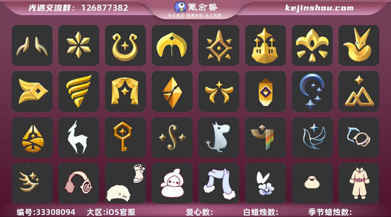 账号类型: 手机账号 季节已毕业: 音韵季,魔法季,圣岛季,预言季,梦想季,小王子季,风行季,潜海季,表演季,破晓季,欧若拉季,集结季,夜行季,追忆季,拾光季,归巢季,九色鹿季,筑巢季,二重奏季,姆明季,彩染季,青鸟季,双星季,迁徙季,织光季 完成地图: 晨岛,云野,雨林,霞谷,暮土,禁阁,全图毕业 珍稀物品: 阿努比斯(狗头),白枭,透明蝶翼斗,白鸟头,魔法季耳坠,玫瑰花 礼包: 蝙蝠套,巫师,围巾,星球斗,小狐狸,欧若拉之翼,九色鹿角,音乐桌,绊爱,鹿角,荷叶伞,牛仔裤,兔子鞋,运动鞋,秋千,茶桌,茶壶,白绒金,瑞雪,女巫裙,福娃,小船,吉他,人声乐器,奔跑发型,橘子,贝壳,兔子,雪花,水母,猫背饰,星月头饰,彩虹耳钉,彩虹耳机,雪怪斗,新年裤,蝴蝶结,奥利奥,四叶草,暗彩装扮,向日葵套,小提琴,拖鞋,滑板,雪人鞋,夹袄斗,新年耳钉,海蓝波浪发型,日光耳环,满月耳坠,锦标赛桂冠,姆明饰品套装,向日葵连衣裙,蛛网朋克,仙境茶会门扉礼包,爱丽丝围裙套装礼包,园丁装扮,献瑞折扇礼包,渐变双马尾发型礼包,心心相印发饰礼包,小狗周年发饰,宝藏猎人礼包,粽子发饰礼包,必胜客联动分享披萨背饰礼包,青衫落拓礼包,周年影院套餐礼包,线框斗篷礼包,小黄鸭发饰礼包,蝴蝶与花发饰礼包,冬日围巾斗篷,蓬松套装,小雪人头饰,云...