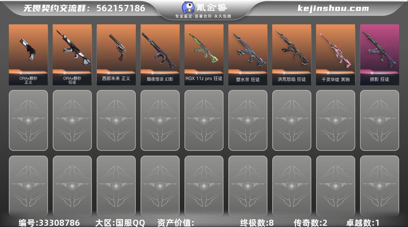 【955791】【英雄】:幻棱,炼狱,维斯,暮蝶,壹决,铁臂,捷风,雷兹,幽影,不死鸟,贤者,猎枭,蝰蛇,零,芮娜,奇乐,尚勃勒,霓虹,斯凯,夜露,K/O,盖可,黑梦 【近战武器】:近战武器-碎心裂刃 【狂徒】:狂徒-洪荒怒焰,狂徒-塑水宗,狂徒-RGX 11z Pro,狂徒-ORA x 颗秒,狂徒-掠影 【幻影】:幻影-黯夜怪谈 【冥驹】:冥驹-千灵华绽 【正义】:正义-西部未来,正义-ORA x 颗秒 【卡面】:南瓜盛典 卡面,无畏契约GO!第一卷:芮娜 卡面,无畏契约GO!第一卷:零 卡面,代号红色 卡面,新兵报到 卡面,V契约 卡面,无畏契约 卡面 【喷漆】:买装还是存钱 喷漆,红鳞 喷漆,胜利属于无畏契约 喷漆,GLHF 喷漆,无畏契约 喷漆 【挂饰】:薰衣草之心 挂饰,天外飞客 挂饰,无畏契约 纪念币 挂饰