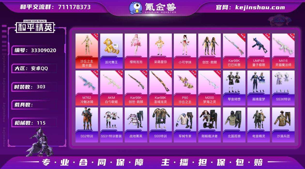 0载具-79套装-115枪皮-1红装3稀有9粉装13特效枪5热门79套装115枪皮 42464热力值 1印记 历史超级王牌7星 【1红装】 沙丘之主-图卡盟 (1级) 【3稀有】 浪漫天命 派对舞王 派对舞王(金靴子) 【9粉装】 幻夜紫晶 花中眠 虹云熊熊 小舞恋语 小舞灵珑 樱桃泡泡 创世救赎 呆萌星弥 小可学妹 【13特效枪】 M416-灵猫魔法师 (5级) P90-沙丘之主 (3级) AKM-白勺歌姬 (4级) AKS-74U-森灵之息 (5级) Kar98K-圣域龙灵 (3级) Kar98K-巳巳如意 (5级) M200-梦海之灵 (1级) AUG-罪夜之冕 (4级) UMP45-量子极限 (5级) Kar98K-创世救赎 (3级) M762-冷魅冰骑 (5级) Mk14-福马献瑞 (4级) AA12-G-萌骑幻想 (1级) 【5热门】 雪山精英 呆萌铁蟹 暗影哥特 狂沙舞者 破蛋小黄鸡 【1飞行器】 幻海精灵飞行器 营地ID: