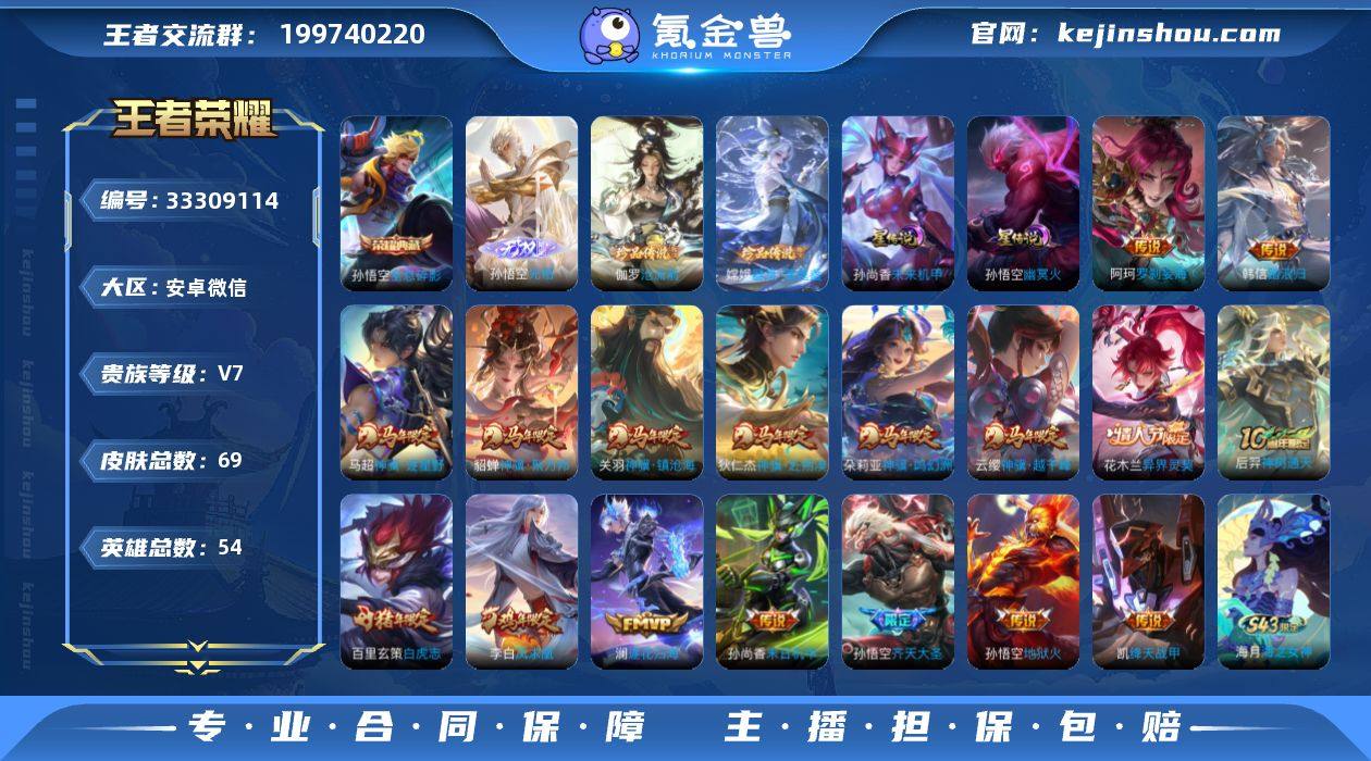 账号 V7,皮肤含金量非常高,不玩了低价清号。 皮肤配置一览: - 荣耀典藏:全息碎影 - 传说皮肤:17款,包含多款限定/珍品皮肤 - 马年限定全套:多套马年限定已集齐 - 星传说、个性按键齐全:基本没有杂皮,都是实用好皮 账号情况: - 不可二次实名 - 无封禁、无违规记录,能正常登录、正常玩游戏 价格已经低于行情,属于低价捡漏号。 诚心出,不墨迹,不接受大刀砍价,看中直接拍,550 一口价。