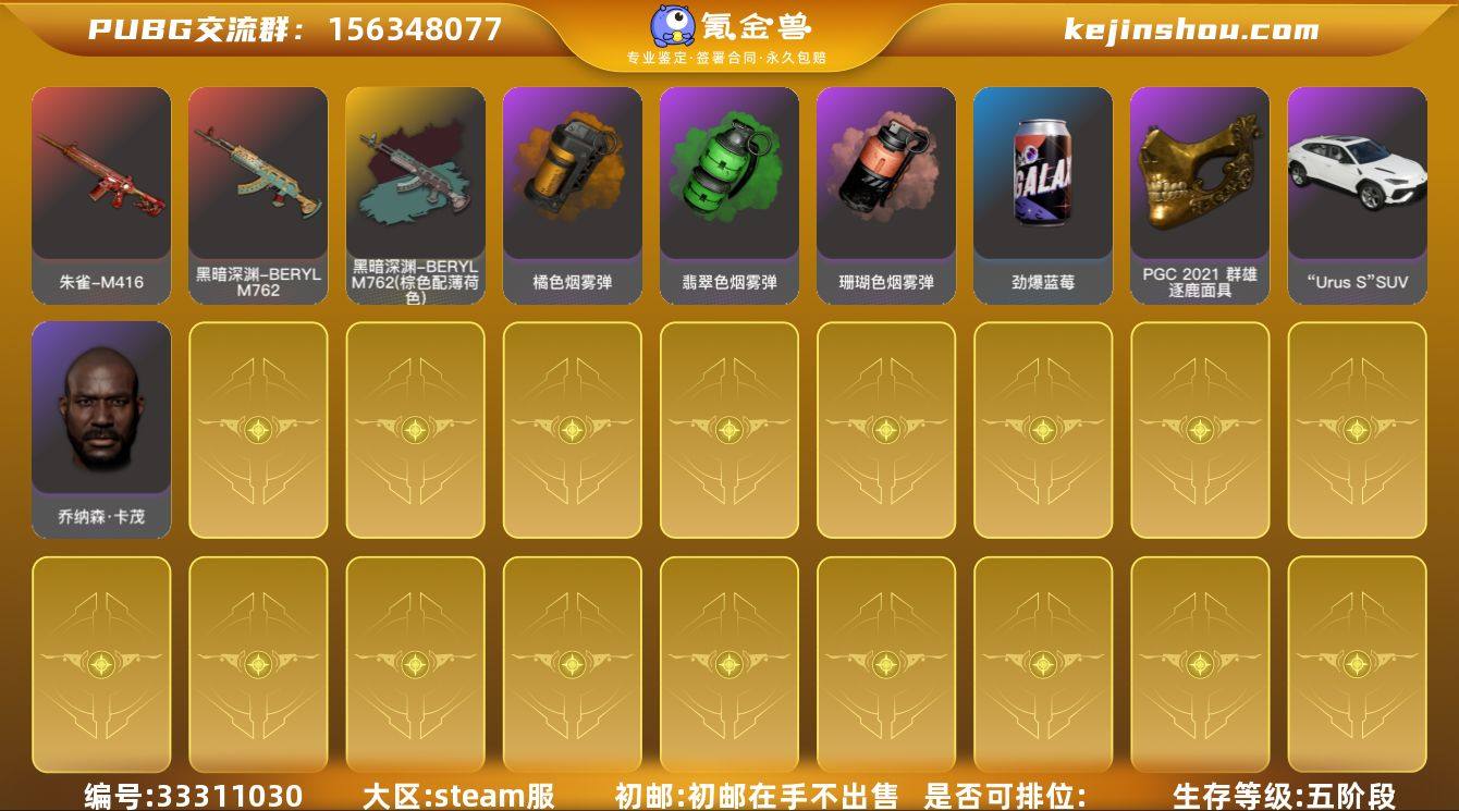 GJD13039 生存500级可排位/9级爆裂弹球-AUG/爆裂弹球-AUG(紫色配粉红色)/1级恶魔猎手-ACE32/1级时光加农-SKS/1级赛博危机-MK12/1级弥诺陶洛斯-AUG/1级寒蚀-MP5K/兰博基尼suv/1级瀚娜/发光手臂/黑鬼/白战神/白熊套/尼尔头/萨芬裤/悲喜跟我结婚吧礼包/红鞋/翡翠色烟雾弹/拉风龙-风华套装/拉风龙-勇往套装/红面具/ 0BFQSF号 无排名, 生存等级1079, 名誉等级4, 金标数量2, 聚合物2596, 枪皮数量217, [成长型] 恶魔猎手 - ACE32[1级], [成长型] 爆裂弹球 - AUG[9级], [成长型] 弥诺陶洛斯 - AUG[1级], “Urus S” SUV