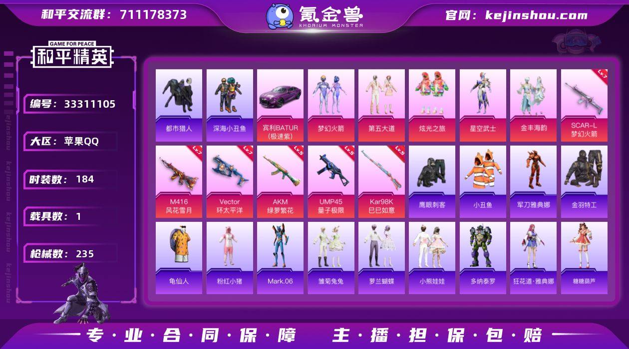 苹果 【精品小号 粉装-梦幻火箭/套装-都市猎人/角色-Mark.06/AKM-绿萝繁花(五级)/SCAR-L-梦幻火箭(七级)/宾利BATUR(极速紫)/梦幻火箭背包】手Q-6粉装-8特效枪-1载具-4粉色飞行器-77618热力值-11王牌印记-184套装-235枪皮 【热门品类】:粉装-梦幻火箭,套装-都市猎人,套装-深海小丑鱼,套装-小丑鱼,角色-军刀雅典娜,套装-金羽特工,套装-龟仙人,套装-粉红小猪,角色-Mark.06 【粉色套装】:粉装-梦幻火箭,粉装-第五大道,粉装-炫光之旅,角色-星空武士,粉装-金丰海韵,角色-鸢尾珑雾 【粉色枪皮等级】:AKM-绿萝繁花(五级),SCAR-L-梦幻火箭(七级),M416-风花雪月(七级),UMP45-量子极限(五级),Vector-环太平洋(七级),Kar98K-巳巳如意(五级),M24-虎痴许褚(二级),Mk14-福马献瑞(五级) 【粉色载具】:宾利BATUR(极速紫) 【粉色枪皮】:AKM-绿萝繁花,SCAR-L-梦幻火箭,M416-风花雪月,UMP45-量子极限,Vector-环太平洋,Kar98K-巳巳如意,M24-虎痴许褚,Mk14-福马献瑞 【粉色飞行器】:炫彩糖果飞行器,梦幻火箭飞行器,太空嘟嘟飞行器,沙丘之主天马 【粉色降落伞】:海渊国主降落伞,环太平洋降落伞,彩虹甜喵降落伞,青空秋雨降落伞,暗夜鎏金降落伞,海螺星光...