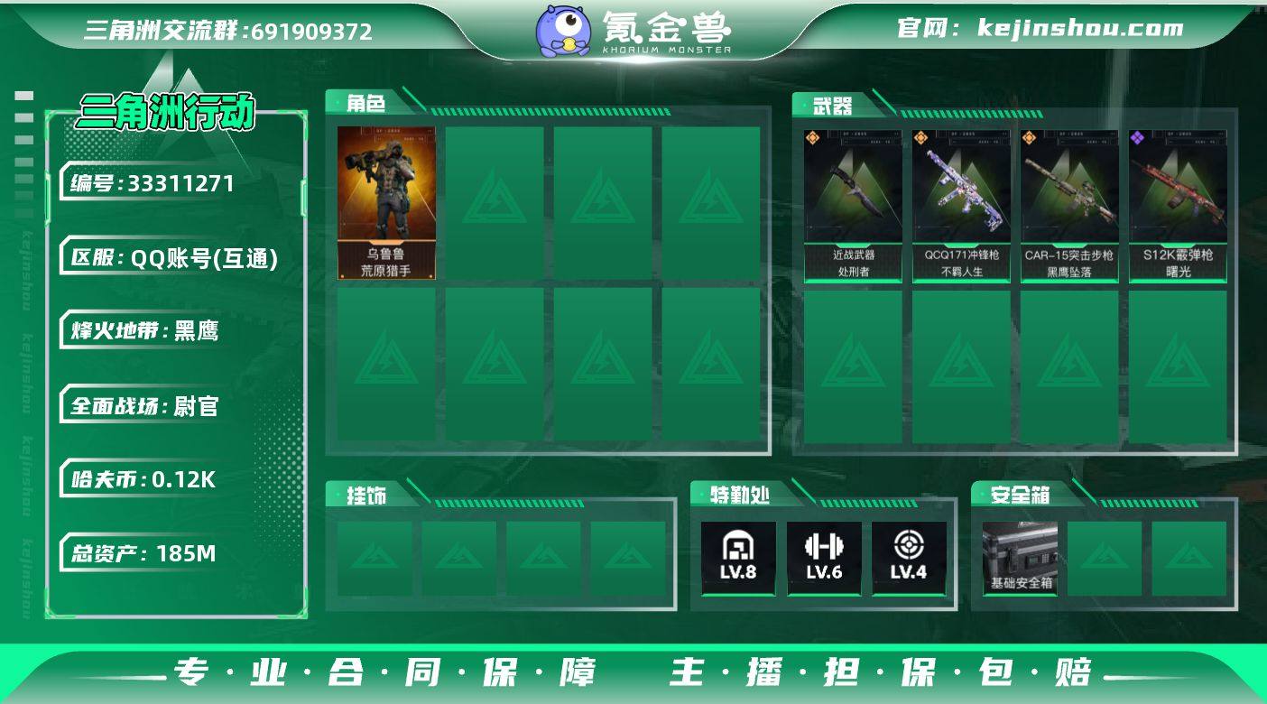 DSX1423【可二次】三端互通-总价值185.28M-哈夫币123,488.17-烽火地带等级60-烽火地带段位黑鹰【干员皮肤】乌鲁鲁-荒原猎手 蛊-不羁人生【近战武器】黑鹰 处刑者【枪皮】SG552突击步枪-巨兽 M4A1突击步枪-粉色涂装 M4A1突击步枪-海色 AKM突击步枪-肃杀 QBZ95-1突击步枪-高雅黑 QBZ95-1突击步枪-海浪 QBZ95-1突击步枪-三角洲力量 QBZ95-1突击步枪-海色 QBZ95-1突击步枪-2026 AKS-74U突击步枪-冰天雪地 K416突击步枪-几何迷彩 K416突击步枪-重击 K416突击步枪-一帆风顺 K416突击步枪-阿萨拉特攻 K416突击步枪-冬日风情 K416突击步枪-腊梅 M16A4突击步枪-高雅黑 M16A4突击步枪-出货 AUG突击步枪-浅蓝涂装 AUG突击步枪-悠然茶歇 M7战斗步枪-红色涂装 M7战斗步枪-黑巧甜心 M7战斗步枪-重击 M7战斗步枪-前沿科技 SG552突击步枪-浅蓝涂装 SG552突击步枪-海浪 SG552突击步枪-狂欢 SG552突击步枪-2026 SG552突击步枪-马年新春 SG552突击步枪-贴花艺术 SG552突击步枪-哈夫克警备 AK-12突击步枪-马年新春 SCAR-H战斗步枪-数码迷彩 SCAR-H战斗步枪-荣耀列队 SCAR-H战斗步枪-囚徒 SCAR-H战斗步枪-荼蘼 G3战斗步枪-高雅黑 PTR-32突击步枪-黄蜂 PTR-32突击步枪-典雅 CAR-15突击步枪-狂欢 CAR-...