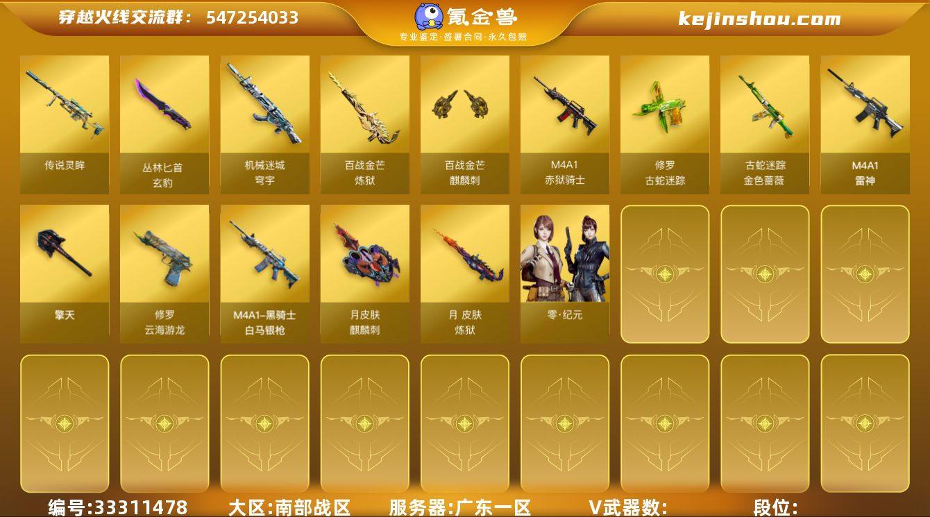 zx2411【传说灵眸精品小号】【广东一区】【可二次实名】【可排位】【传说灵眸精品小号】【荣耀之巅】【会员等级VIP3】【CF点4519】【V武器数24】【传说灵眸】【丛林匕首-玄豹】【炼狱-百战金芒】【魂·炼狱-玩具枪】【奇洋探员】【蛇隐宗】【M4A1-雷神】