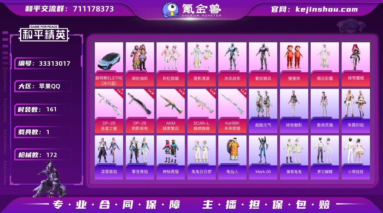 YZJ16886-不可二次-苹果Q-1载具8粉装7特效枪7热门【精品公主号 猪妹 彩虹甜喵 绯穹魔姬 烟云彩露 兔兔白日梦 晶辉守护 萌趣戎叽 都市丽猫 卖崽青蛙 牛仔情诗 神秘黑猫 蓝螳螂 圣堂之誓背包头盔 7款飞行器】161套装172枪皮 59248热力值 8印记 历史超级王牌10星 【1载具】 路特斯EL蓝色 【8粉装】 猪猪侠 绯穹魔姬 烟云彩露 冰炎战车 紫钛骑兵 缤纷油彩 莲影清波 彩虹甜喵 【7特效枪】 SCAR-L-锦绣绵绵 (5级) AKM-绿萝繁花 (5级) DP-28-豹影疾电 (5级) DP-28-圣堂之誓 (7级) Kar98K-未来歌姬 (5级) Mk14-福马献瑞 (1级) PKM-萌骑夺宝 (4级) 【7热门】 Mark.06 龟仙人 晶辉守护 兔兔白日梦 神秘黑猫 破蛋小黄鸡 极速红龙 【1飞行器】 太空嘟嘟飞行器 【1头盔】 深海小丑鱼头盔 营地ID:915973751