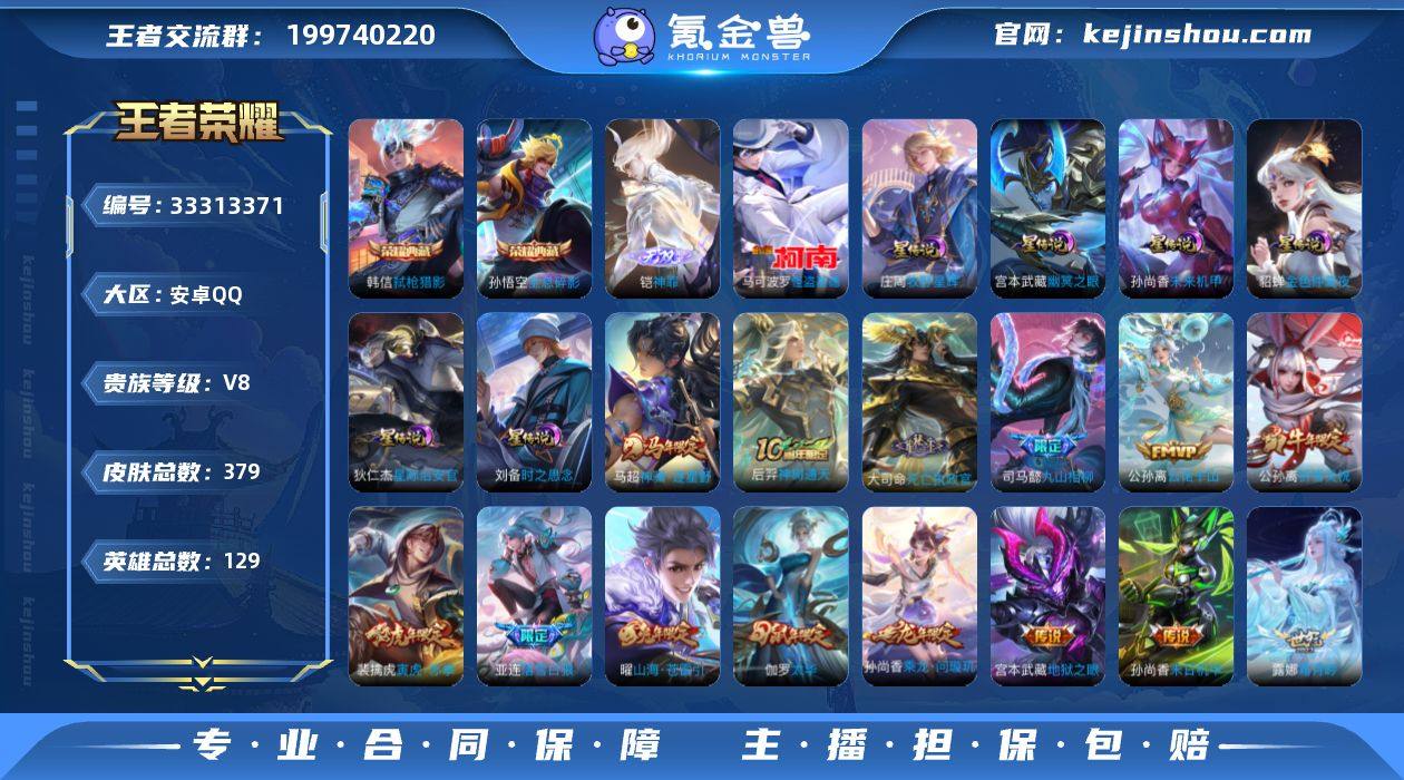 【V8 2典藏 1无双 1珍品 6星传说 22传说 379皮肤 129英雄】怪盗基德 至尊宝 神威 全息碎影,弑枪猎影 神罪 牧野星辉,金色仲夏夜,未来机甲,幽冥之眼,星际治安官,时之思念 山海·苍雷引,太华,寅虎·赤拳,祈雪灵祝,落雪白狼,久胜战神,武陵仙君,仲夏夜之梦,末日机甲(孙尚香),地狱之眼,超时空战士(狄仁杰),武圣,黄金白羊座,启明星使,霜月吟,乘龙·问璇玑,鸣野蒿,云诺千山,九山相柳,死亡执政官,神树通天,神骥·逐星野 德 27/2 df80-11,编号:WPRKQ91