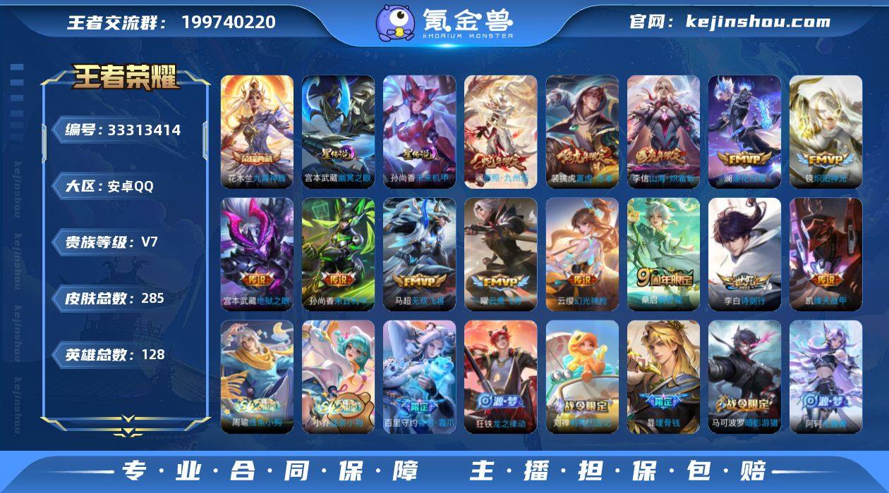 WZ23696|高性价比账号便宜出!热门皮肤多多!安卓QQ 285皮 贵族7级 1典藏 15传说 75史诗【荣耀典藏】九霄神辉【传说皮肤】神骥·越千峰,踏浪归,幻光神枪,末日机甲,地狱之眼,云鹰飞将,山海·炽霜斩,诗剑行,鸣野蒿,逐花归海,愿照·九州安卓QQ 285皮 贵族7级 1典藏 15传说 75史诗【荣耀典藏】九霄神辉【传说皮肤】神骥·越千峰,踏浪归,幻光神枪,末日机甲,地狱之眼,云鹰飞将,山海·炽霜斩,诗剑行,鸣野蒿,逐花归海,愿照·九州拓,寅虎·赤拳,绛天战甲,炽阳神光,无双飞将【史诗皮肤】线条小狗,梁祝,时之祈愿,纤云弄巧,心灵战警,箭羽风息,无心,暗隐猎兽者,电玩·爆裂旋风,鸭鸭历险记,天才门将,绅士熊喵,德古拉伯爵,末日机甲,圣诞狂欢,龙骑士,金属风暴,魅力维加斯,拒霜思,摇滚巨星,优雅恋人,水果甜心,蔷薇恋人,心灵骇客,鬼剑武藏,缤纷独角兽,高山流水,万物之道,奇幻香踪,埋骨钱,星界游侠,幽灵船长,逐浪之夏,顽趣,修罗,月团寄思,赏金猎手,星界战将,电玩高手,龙之律动,魔术师,鹰眼统帅,冰雪圆舞曲,星夜王子,雪豹·霜爪,特工魅影,原初追逐者,热力回旋,功夫厨神,航海奇遇记,水晶猎龙者,荣光圣徽,百解令,顽岩魄,舞动绿茵,李小龙,黄金分割率,圣诞恋歌,皇家上将,百木心枪,未来纪元,器灵·浮梦炉,乐园奇幻...