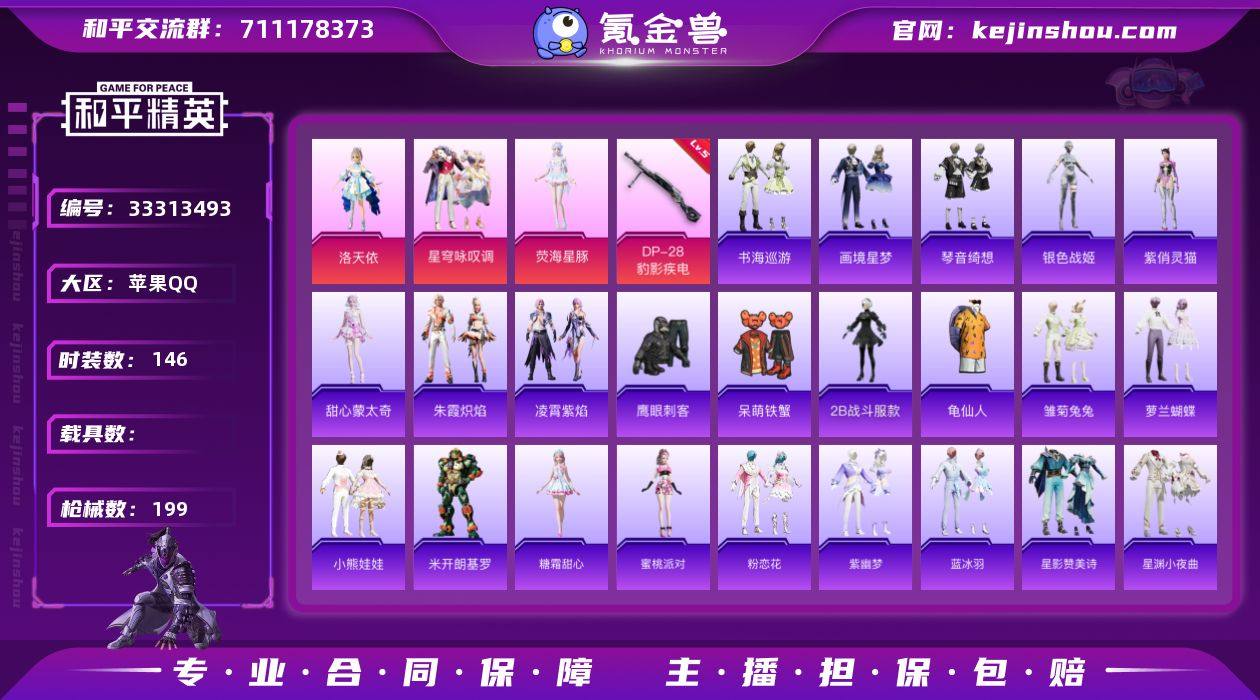 【特价出售/店主推荐-精品小号热门套装龟仙人/洛天依】苹果 手Q-4粉装-5特效枪-4粉色飞行器-56343热力值-10王牌印记-146套装-199枪皮【热门品类】:角色-2B战斗服款,套装-龟仙人【粉色套装】:角色-洛天依,粉装-星穹咏叹调,角色-荧海星豚,人物-小舞·恋语【粉色枪皮等级】:UMP45-萌骑冒险(四级),AKS-74U-森灵之息(五级),Mk14-福马献瑞(五级),DP-28-豹影疾电(五级),撬棍-小舞(四级)【粉色枪皮】:UMP45-萌骑冒险,AKS-74U-森灵之息,Mk14-福马献瑞,DP-28-豹影疾电,撬棍-小舞【粉色飞行器】:炫彩糖果飞行器,绯果甜心飞行器,桃源时光飞行器,灵珠游龙飞行器