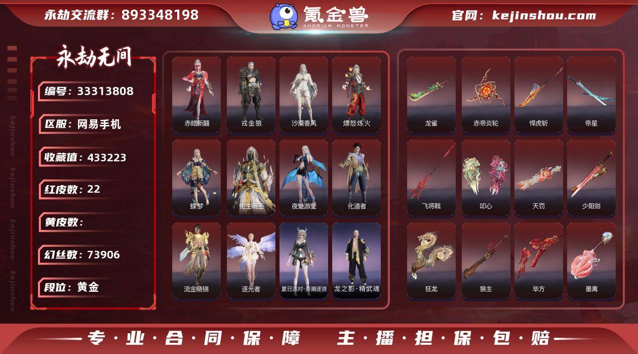 WJ5998,网易手机,5月10日可换绑,三人段位黄金4,22红,777金,声望16,封神录赤莲,御祥云,千秋匠心凶虎,墨离,赤帝炎轮,叩心,少阳剑,帝星,龙雀,狼主,悍虎斩,飞将戟,狂龙,天罚,毕方,赤皓新囍,化生明王,戎金狼,熛怒炼火,蝶梦,沙漠香风,夜魅游莹,化道者,流金晓锦,逐光者,龙之影精武魂,龙之影过江龙,夏日派对弄潮逐浪,绿野守护毛乎乎,西行劫,紫金宝剑,逆天劫魂花,昆仑之主,紫金玉女,绿野守护悠竹萌客,甜夜安眠鹅黄纱梦,男性发型14,不良人李星云,封神录了龙吉公主,活动中心手机绑定无法解绑