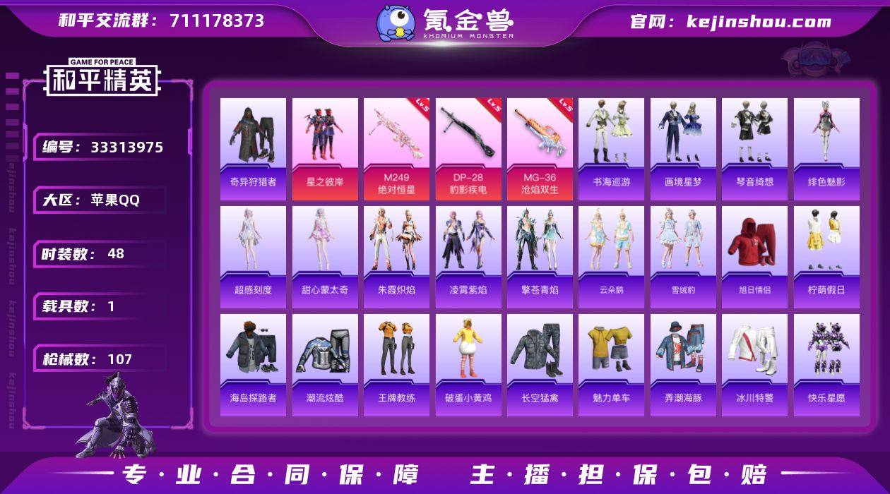 【LHPX1403】粉装1/粉枪6/载具1/珍稀飞行器130245,123358/套装48/枪皮107/热力值25399/历史最高段位:王牌印记4次/Lv:53/二级ACE32-萌骑漫游/五级AKS-74U-森灵之息/五级Mk14-福马献瑞/五级M249-绝对恒星/五级DP-28-豹影疾电/五级MG-36-沧焰双生/奇异狩猎者/星之彼岸/法拉利Roma(纽博格林银)/ACE32-萌骑漫游/AKS-74U-森灵之息/Mk14-福马献瑞/M249-绝对恒星/DP-28-豹影疾电/MG-36-沧焰双生/炫彩糖果飞行器/极意拳锋飞行器/绝对恒星降落伞/星之彼岸降落伞/冷漠罗丽降落伞/智趣喵喵降落伞/炫彩糖果降落伞/超感刻度/甜心蒙太奇/套装-雪国风尚/炫彩糖果/角色-罗莉/套装-马上有钱/云朵鹅/雪绒豹/朱霞炽焰/凌霄紫焰/擎苍青焰/绯色魅影/书海巡游/画境星梦/琴音绮想/角色-月烬之祷/套装-雨过天青/套装-红釉青花/AUG-冰晶雪宝/AKM-破晓战魂/AKM-龙的传人/M16A4-红色方程式/M16A4-蓝色火焰/SCAR-L-夜灯/SCAR-L-炫彩节奏/SCAR-L-玉兔迎春/SCAR-L-红色方程式/M416-红色方程式/M416-蓝色火焰/AUG-耀粉歌者/AUG-绝对恒星/M762-天降萌叽/M762-云朵鹅/M762-登顶巅峰/ACE32-画境星梦/ARX-凌霄紫焰/UZI-天降萌叽/UZI-影袭/UZI-红色方程式/UMP45-夜灯/汤姆逊-耀粉歌者/汤姆逊-像素花束/MP5K-画境星...