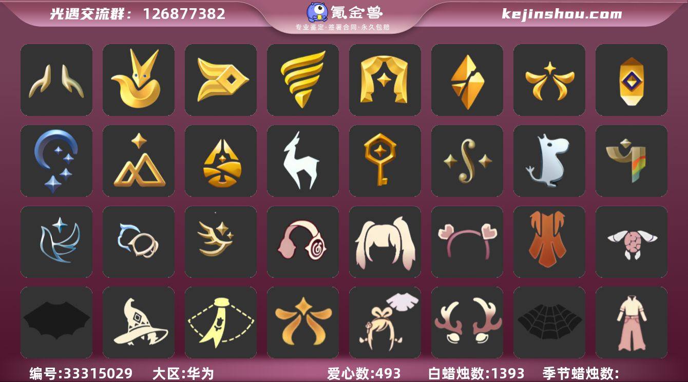 账号类型: 手机账号 季节已毕业: 小王子季,风行季,潜海季,表演季,破晓季,欧若拉季,夜行季,追忆季,拾光季,归巢季,九色鹿季,筑巢季,二重奏季,姆明季,彩染季,青鸟季,双星季,迁徙季,织光季 完成地图: 晨岛,云野,雨林,霞谷,暮土,禁阁 珍稀物品: 白枭,透明蝶翼斗,周年电吉他,玫瑰花,彩虹围巾 礼包: 蝙蝠套,巫师,围巾,欧若拉之翼,绊爱,鹿角,蜘蛛斗,牛仔裤,秋千,茶桌,茶壶,白绒金,瑞雪,福娃,跷跷板,小船,吉他,灯笼,致爱装扮,人声乐器,奔跑发型,彩虹帽,雪花球,橘子,贝壳,黄伞,红伞,兔子,南瓜,枯角,雪花,电吉他,水母,猫套,猫背饰,星月头饰,彩虹耳钉,彩虹耳机,新年裤,蝴蝶结,魔法棒,四叶草,爱心眼镜,火焰眼镜,雪人鞋,创始人,遥鲲披肩斗篷,锦标赛桂冠,线框斗,海龟斗篷,渐变双马尾发型礼包,心心相印发饰礼包,奉献斗篷,云音伴游耳机 裤子: 武士裤,背带裤,搓澡巾,击剑裤,妮妮裙子,王子服,蓝绿裤,筑巢季·裤子,风行毕业裤子 面具: 裂纹面具,呼吸面具,夜行毕业面具,黄眉企鹅面具,辉光羚羊面具 面饰: 红耳机,黑框眼镜,青鸟毕业面饰 项链: 围巾 发型: 归巢毕业发型,若笠,虚荣,单侧绑发,小王子发型,留辫蘑菇头,飞天盘发 头饰: 羽毛发饰,牛仔帽,蓝色音乐会,平顶帽 斗篷: 海洋斗,绿芽,粉红绒毛斗篷,遥...