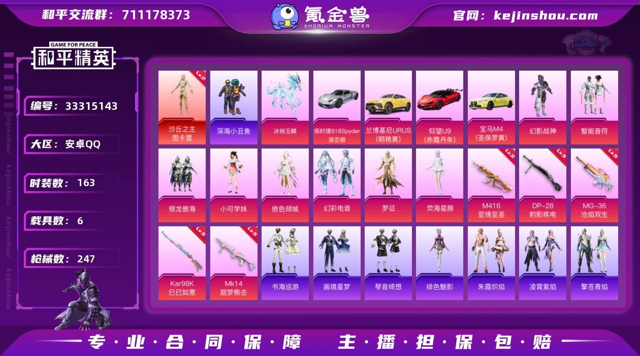 【LHPX1480】粉装9/粉枪10/载具6/珍稀飞行器130181,130245,72259,103444,103345,104160,104487,106010,114161,114177,123358,126488/套装163/枪皮247/热力值81194/历史最高段位:王牌印记10次/Lv:60/三级AKM-暮色玫影/九级M416-至情至圣/二级ACE32-萌骑漫游/五级AKS-74U-森灵之息/五级Kar98K-巳巳如意/五级MK14-甜梦熊击/五级Mk14-福马献瑞/五级DP-28-豹影疾电/五级MG-36-沧焰双生/五级破片手榴弹-招财进宝/一级暮色玫影-艾丽娅/二级沙丘之主-图卡盟/暮色玫影-艾丽娅/沙丘之主-图卡盟/浪漫天命/深海小丑鱼/小丑鱼/军刀雅典娜/忍者信条/龟仙人/熔岩游骑兵连帽夹克/幻影战神/智能音符/银龙傲海/小可学妹/绝色倾城/幻彩电音/罗征/荧海星豚/人物-小舞·雪昙/兰博基尼URUS(明艳黄)/仰望U9(赤霞丹朱)/宝马M4(圣保罗黄)/保时捷918Spyder(液态银)/冰绡玉鳞/暮色幽蹄/AKM-暮色玫影/M416至情至圣/ACE32-萌骑漫游/AKS-74U-森灵之息/Kar98K-巳巳如意/MK14-甜梦熊击/Mk14-福马献瑞/DP-28-豹影疾电/MG-36-沧焰双生/破片手榴弹-招财进宝/香车宝马飞行器/炫彩糖果飞行器/飞行器-星之彼岸/曦光华影飞行器/绯果甜心飞行器/御兔特攻飞行器/时光之吻飞行器/灵猫魔法师飞行器/飞天猪飞行器/灵珠游龙飞...