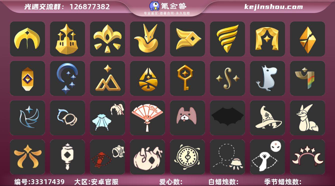 KK0032 安官【毕业图】晨岛,云野,雨林,霞谷,暮土,禁阁 【毕业季】预言季,风行季,圣岛季,梦想季,潜海季,表演季,小王子季,集结季,破晓季,欧若拉,追忆季,夜行季,拾光季,归巢季,九色鹿,筑巢季,二重奏季,姆明季,彩染季,青鸟季,双星季,迁徙季,织光季 【蜡烛】231 【爱心】151 【稀有礼包】奔离远行服,瑞气服饰,星月头冠,彩虹耳饰,彩虹耳机,圣诞鹿角,巫树犄角,大蝴蝶结,水母肩饰,奔离远行发,巫师帽,贝壳发饰,雪花发夹,玉兔发饰,小狗周年头饰,四叶草头饰,TGC斗篷黑,创始人斗篷,小王子围巾,欧若拉之翼,鲤跃龙门,蝙蝠斗,蛛网斗篷,绊爱礼包,欧若拉之声,中秋灯笼,瑞气纸伞,情人秋千,狐狸背包,冥龙南瓜,献瑞折扇礼包,玫瑰褶边斗篷,大橘大利,南瓜头,青衫落拓礼包,小黄鸭发饰,福娃礼包,皮皮猫套装 【毕业物品】手拍大鼓,阿努比斯,多羽发饰,蓝黄羽袖,毕业手碟,鳐鲲斗篷,凤凰面具,凤凰斗篷,潜水面具,单边小辫,维京斗篷,帝企鹅发,黄眉企鹅面具,燕尾斗篷,丛林黑面具,六边锅帽子,胜利号角,连帽斗篷,双翼遥鲲斗,冥龙斗篷,留辫蘑菇头,高领舞服,透明蝶翼斗,肩带,追忆之书,棕熊面具,绒毛斗篷,西部帽,粗...