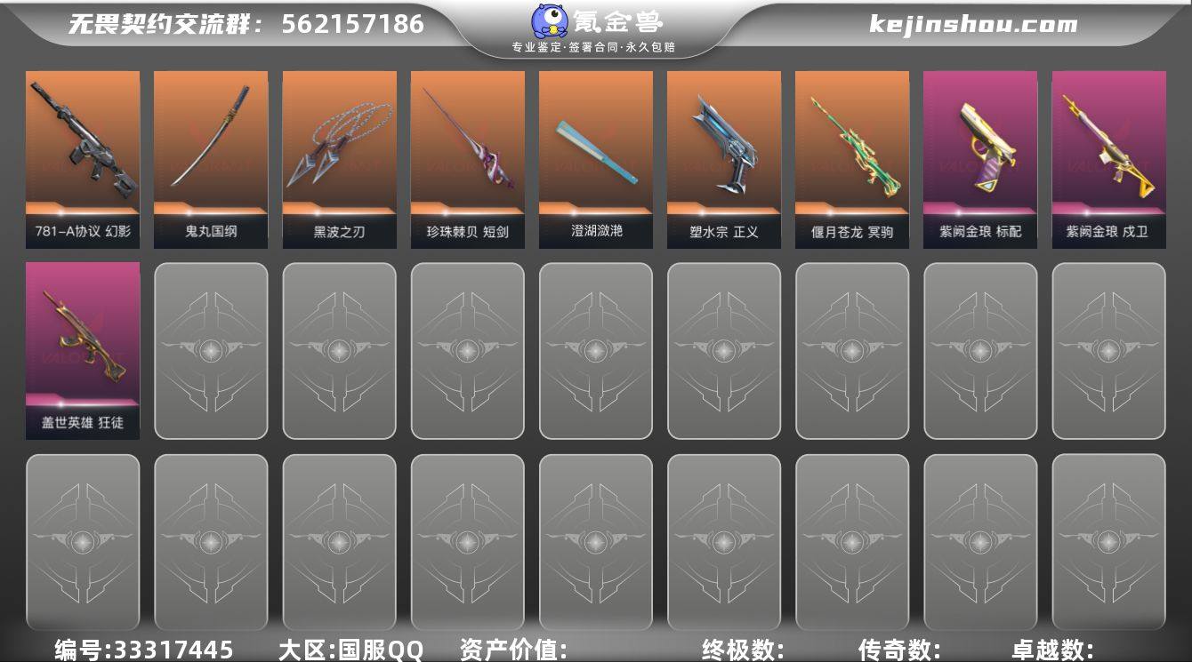 【步枪皮肤】獠犬-般若假面//2.0,狂徒-般若假面//2.0,狂徒-掠影,狂徒-混沌序曲,狂徒-塑水宗,狂徒-盖亚的复仇,狂徒-耀鳞威龙,狂徒-盖世英雄,幻影-781-A协议,戍卫-紫阙金琅