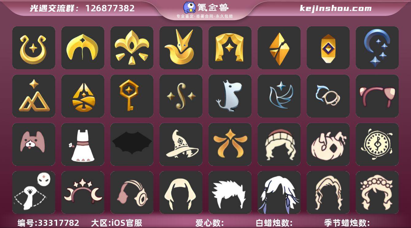 KD0078 ios官 【毕业图】晨岛,云野,雨林,霞谷,暮土,禁阁 【毕业季】预言季,魔法季,圣岛季,表演季,小王子季,集结季,破晓季,欧若拉,追忆季,夜行季,拾光季,归巢季,九色鹿,筑巢季,二重奏季,姆明季,青鸟季,双星季 【蜡烛】253 【爱心】206 【稀有礼包】瑞气服饰,牛仔裤,向日葵连衣裙,圣诞雪人,皮皮猫礼包,星月头冠,神鹿祝福礼包,彩虹耳饰,彩虹耳机,火焰眼镜,爱心眼镜,巫树犄角,大蝴蝶结,夏日有友礼包,彩虹帽,巫师帽,蜘蛛朋克头,雪花发夹,小狗周年头饰,四叶草头饰,TGC斗篷黑,创始人斗篷,欧若拉之翼,蝙蝠斗,透明蜘蛛斗,白雪斗篷,绊爱礼包,情人秋千,情人跷跷板,野餐礼包,冥龙南瓜,自然之声礼,周年庆抱枕,姆明饰品套装,恶作剧飞行扫帚礼包,姆妈手作斗篷礼包,大橘大利,南瓜头,粽子发饰,福娃礼包,皮皮猫套装 【毕业物品】手拍大鼓,阿努比斯,阿拉丁帽,双边耳坠,毕业手碟,鳐鲲斗篷,凤凰面具,单边小辫,维京斗篷,帝企鹅发,黄眉企鹅面具,燕尾斗篷,丛林黑面具,六边锅帽子,胜利号角,连帽斗篷,双翼遥鲲斗,冥龙斗篷,留辫蘑菇头,高领舞服,透明蝶翼斗,肩带,追忆之书,棕熊面具,绒毛斗篷,西部帽,粗框眼镜...