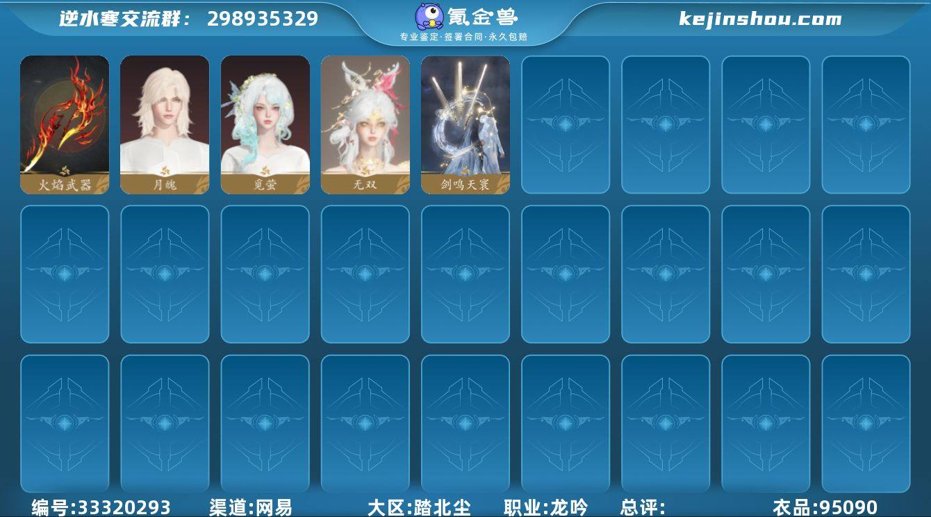 【区服】 云川雪青 【充值称号】 凭栏听雨 【已用天赏石】 5 【天赏发型】 月魄, 觅萤, 无双 【天赏外观】 火焰武器, 剑鸣天寰 【副本外观】 白夜拂雪*1 【商城外观】 雪庭问宋, 千星咏叹, 晴岸涛吟, 贪狼摄星, 甜宙漫游, 末日狂歌, 野径风途, 居居勇者, 纯白月光, 焦糖暖绒, 羽信絮梦, 血宴风华, 珊枝琢浪, 灵珠海羽, 跃动心芒, 朔雪从风, 开阳执戈, 林泽仙踪, 白灵幻尘, 御宇临渊 【祥瑞坐骑】 风行·万灯明, 云螭·再浪一夏, 龙衔瑞焰, 呆宝, 甜点鼠鼠, 狂霸天, 风行·江湖景, 风行·世间情, 伯力, 瓜皮, 墨流云·玄色, 奔虹赤, 犬威哮月·沧, 犬威哮月·焰, 玉霄飞练, 隐云涧 【灵韵内功】 锐锋 【铜币数量】 47534天赏石外观: 火焰武器,无双,剑鸣天寰(礼盒),觅萤,月魄