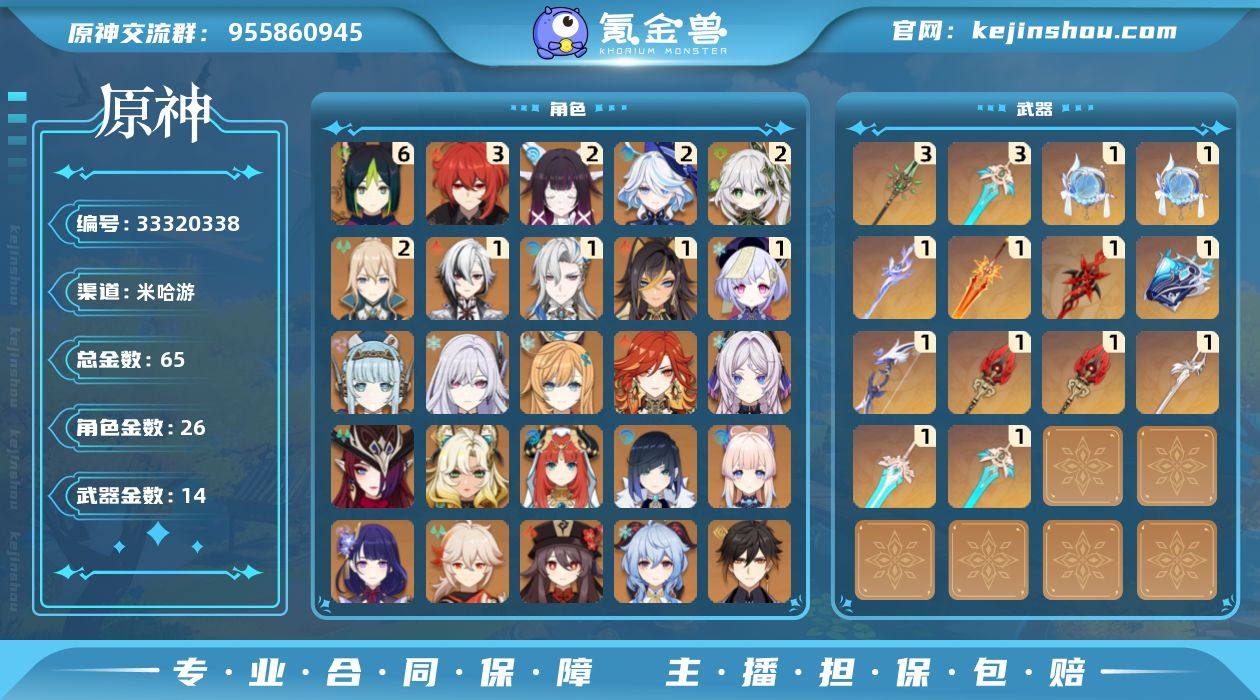 丝马龙仆全有专武,6命95级提纳里,包里还有一个命星,活动还可以选一个。2+1少女(多一把专武),2+0芙芙纳西妲,1+1龙王仆人,0+1火神丝柯克夜兰胡桃,伊涅芙爱可菲奶奶希诺宁全有,配队齐全。300创世结晶,月卡还有20天左右,卡池大保底垫了40抽左右且已经连歪两次了,下个小保底很大概率不歪。地图除新地图外全满。