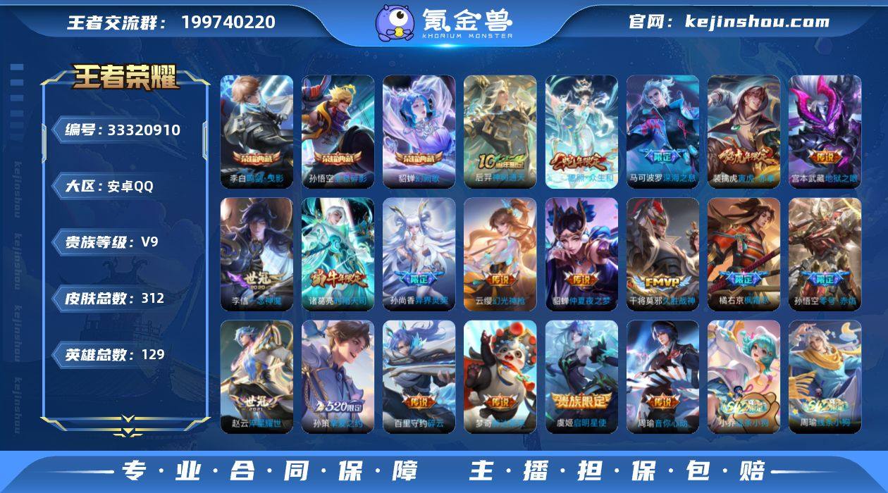 【mwz395】安卓Q-V9-永恒钻石V段位-129英雄-312皮肤-3典藏皮肤-19传说-90史诗 【英雄全皮】:橘右京全皮 【荣耀典藏】:孙悟空全息碎影,李白鸣剑曳影,貂蝉幻阙歌 【传说皮肤】:后羿神树通天,妲己愿照众生和,云缨幻光神枪,百里守约碎云,橘右京枫霜尽,马可波罗深海之息,孙策挚爱之约,裴擒虎寅虎赤拳,孙尚香异界灵契,赵云淬星耀世,周瑜音你心动,诸葛亮时雨天司,虞姬启明星使,孙悟空零号赤焰,李信一念神魔,干将莫邪久胜战神,梦奇胖达荣荣,貂蝉仲夏夜之梦,宫本武藏地狱之眼 【限定皮肤】:狄仁杰阴阳师,赵云皇家上将,墨子神迹守卫,妲己时之奇旅,孙尚香蔷薇恋人,孙尚香异界灵契,鲁班七号狮舞东方,鲁班七号乒乒小将,庄周高山流水,高渐离玩趣恶龙,钟无艳超时空战士,扁鹊奇幻香踪,白起夜都怪侠,芈月幻夜卜梦,元歌云间偶戏,夏侯惇朔风刀,甄姬游园惊梦,甄姬落雪兰心,曹操烛龙,典韦穷奇,马可波罗暗影游猎,马可波罗深海之息,马可波罗山海玄木吟,狄仁杰魔术师,狄仁杰万华元夜,达摩星际陆战队,达摩沙漠行僧,项羽海滩派对,老夫子醍醐杖,老夫子航海奇遇记,关羽冰锋战神,程咬金演武夺筹,韩信飞衡,韩信傲雪梅枪,王昭君午后时光,兰陵王金...
