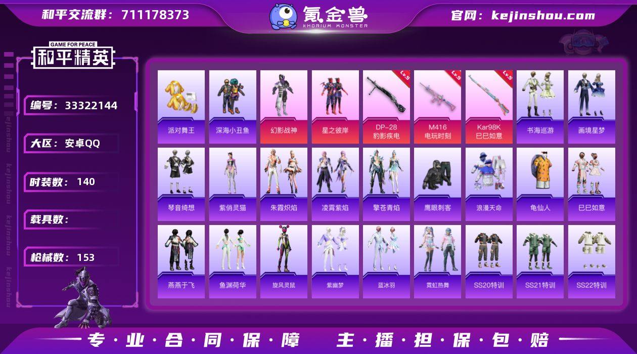 J3228 精品身法 2粉 7特 派对舞王 幻影战神 星之彼岸 安卓 手Q-2粉装-7特效枪-0载具-1粉色飞行器-40929热力值-4王牌印记-140套装-153枪皮 【热门品类】:套装-浪漫天命,套装-派对舞王,套装-深海小丑鱼,套装-龟仙人 【粉色套装】:粉装-幻影战神,粉装-星之彼岸 【粉色枪皮等级】:M416-电玩时刻(五级),UMP45-萌骑冒险(四级),AKS-74U-森灵之息(四级),Kar98K-巳巳如意(五级),Mk14-福马献瑞(五级),DP-28-豹影疾电(五级),信号枪-金乌曜日(四级) 【粉色枪皮】:M416-电玩时刻,UMP45-萌骑冒险,AKS-74U-森灵之息,Kar98K-巳巳如意,Mk14-福马献瑞,DP-28-豹影疾电,信号枪-金乌曜日 【粉色飞行器】:炫彩糖果飞行器 【粉色降落伞】:绝对恒星降落伞,星之彼岸降落伞,精灵梦叶罗丽降落伞,异瞳寒姬降落伞,炫彩糖果降落伞 【稀有套装】:套装-龟仙人,套装-巳巳如意,套装-雪国风尚,套装-炫彩糖果,套装-马上有钱,套装-迅捷龙虾,套装-燕燕于飞,套装-鱼渊荷华,套装-旋风灵鼠,套装-紫幽梦,套装-蓝冰羽,套装-霓虹热舞,套装-朱霞炽焰,套装-凌霄紫焰,套装-擎苍青焰,角色-紫俏灵猫,套装-书海巡游,套装-画境星梦,套装-琴音绮想,套装-雨过天青,套装-红釉青花...
