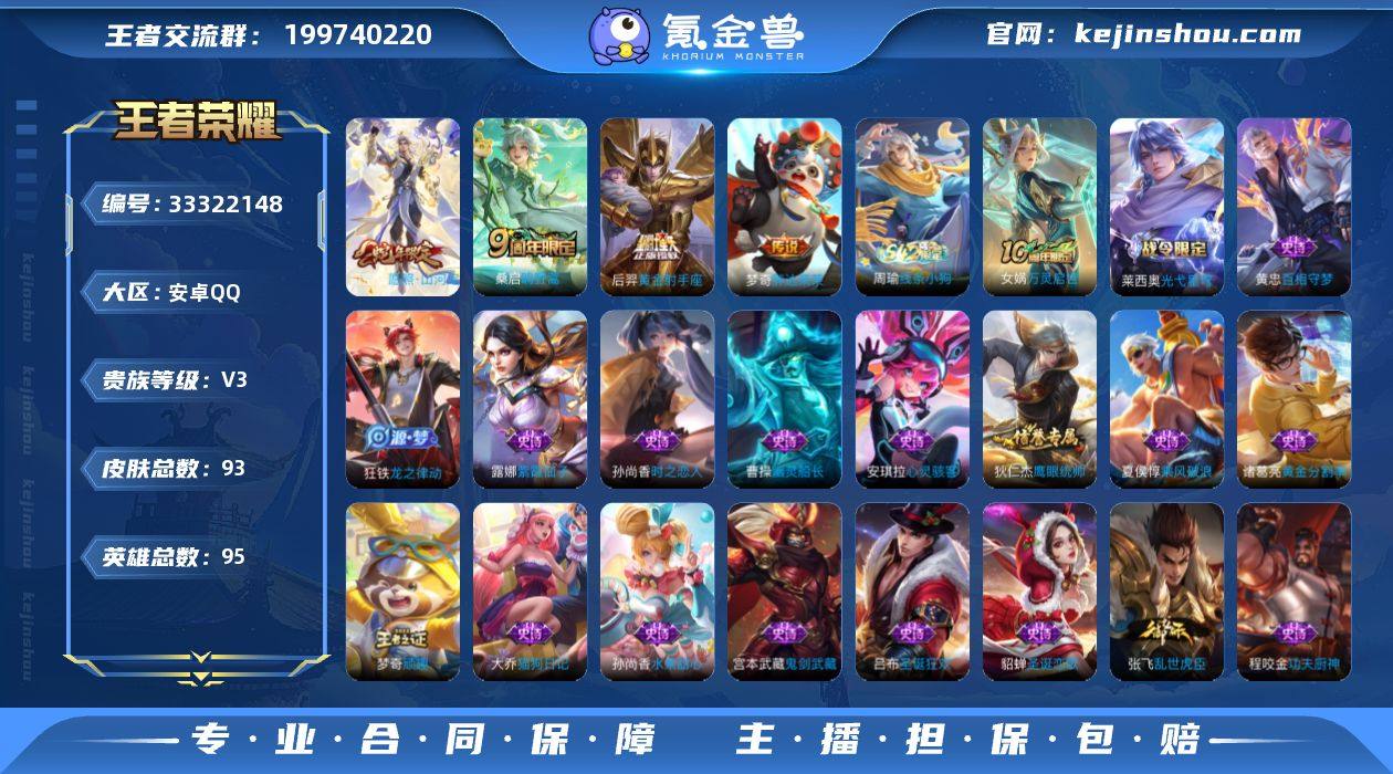 【WZ182297】安卓Q-V3-永恒钻石I段位-95英雄-93皮肤-4传说-26史诗【传说皮肤】:司空震愿照山河定,桑启鸣野蒿,梦奇胖达荣荣,后羿黄金射手座【限定皮肤】:蒙犽顽岩魄,姜子牙天穹之誓,狄仁杰阴阳师,高渐离玩趣恶龙,梦奇顽趣,沈梦溪龙舞盛年,刘邦剑破天穹,周瑜熔金海岸【年限皮肤】:司空震愿照山河定【赛季限定】:刘邦剑破天穹,姜子牙天穹之誓,东皇太一噬灭天穹,太乙真人谧流熔炉,钟馗虚灵犬护,甄姬逆浪荇歌,亚瑟荣光之誓,梦奇顽趣【战令限定】:莱西奥光弋星穹,明世隐往忆晖光,周瑜线条小狗【史诗皮肤】:海月海之女神,周瑜线条小狗,女娲万灵启世,百里玄策罗小黑战记,莱西奥光弋星穹,黄忠百相守梦,狂铁龙之律动,蒙犽顽岩魄,梦奇顽趣,沈梦溪月团寄思,孙尚香时之恋人,狄仁杰鹰眼统帅,大乔猫狗日记,程咬金功夫厨神,蔡文姬舞动绿茵,安琪拉心灵骇客,诸葛亮黄金分割率,夏侯惇乘风破浪,张飞乱世虎臣,曹操幽灵船长,吕布圣诞狂欢,妲己魅力维加斯,嬴政摇滚巨星,孙尚香水果甜心,宫本武藏鬼剑武藏,王昭君偶像歌手,貂蝉圣诞恋歌,露娜紫霞仙子【其他皮肤】:影百相守梦,艾琳鹤鸣心笺,明世隐往忆晖光,亚瑟荣光之誓,鬼谷子克喵,莱西奥踏...