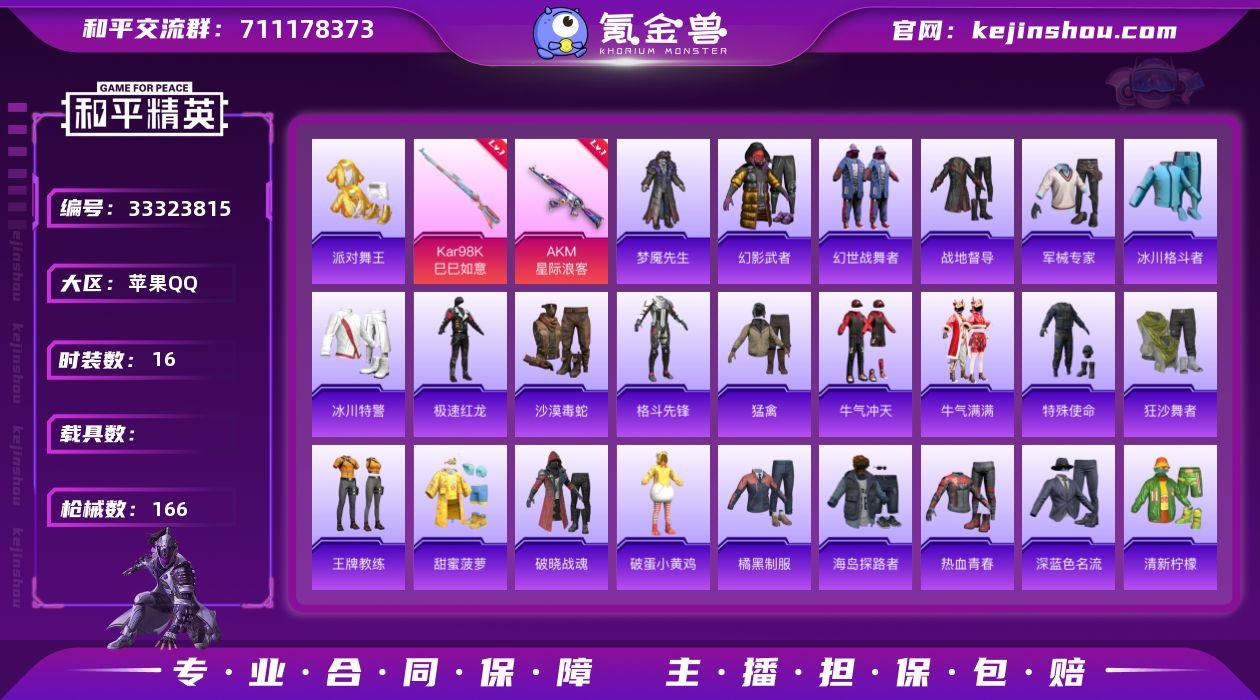 HX9502【派对舞王金鞋子-粉装-幻彩电音-地铁46点天赋-1粉装3特效枪-七级AKM-星际浪客-身法素材号】 苹果 手Q-1粉装-3特效枪-0载具-2粉色飞行器-50331热力值-4王牌印记-125套装-166枪皮 【热门品类】:套装-派对舞王 【粉色套装】:粉装-幻彩电音 【粉色枪皮等级】:AKM-星际浪客(七级),Kar98K-巳巳如意(五级),DP-28-豹影疾电(五级)苹果Q区-1粉装-3特效枪-50331热力值-4王牌印记-125套装-166枪皮【优质套装】: 幻彩电音【特效枪等级】:Kar98K-巳巳如意(五级- Kar98K-巳巳如意)AKM-星际浪客(七级- AKM-星际浪客)【优质武器皮肤】: Kar98K-巳巳如意 AKM-星际浪客【稀有武器皮肤】: DBS-乌木金纹 Kar98K-巳巳如意 AKM-星际浪客 蜜獾-乌木金纹 M416-红色方程式 M416-蓝色火焰 M416-黄金狮王 M416-绯红前夜 AKM-环太平洋 AKM-夜灯 AKM-乌木金纹 AKM-破晓战魂 AKM-灼热熔岩 SCAR-L-玉兔迎春 SCAR-L-暗夜玫瑰 SCAR-L-炫彩节奏 M16A4-蓝色火焰 M16A4-幻世战舞者 M16A4-甜心亚梦 GROZA-田园牧歌 GROZA-治愈之星 AUG-甜蜜菠萝 AUG-魔法学院 QBZ-飞驰魅影 QBZ-乌木金纹 QBZ-彩虹符号 M762-乌木金纹 M762-牛气冲天 M762-彩虹甜喵 Mk47-乌木金纹 G36C-乌木金纹 AC-VAL-天降萌叽 AC-VAL...